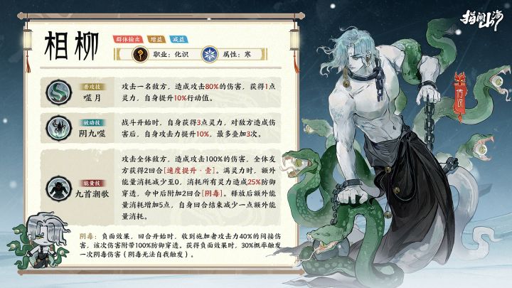 哈喽,星主大人们好,我是你们的朋友小桃姬~最近又有很多新朋友加入《指间山海》西施——作为第二日登录领取的强力幻灵仍有许多新进游戏的小伙伴对他不甚了解为此,小桃姬邀请到了《指间山海》攻略达人,天书阁成员大迷给大家带来一篇关于幻灵西施的角色简析(还想看什么,尽管和我说~)(以下内容来源于玩家投稿,仅供参考)技能介绍碧水流兮:普攻,概率可挂命中降低。翠尾戏荷:回合技,aoe技