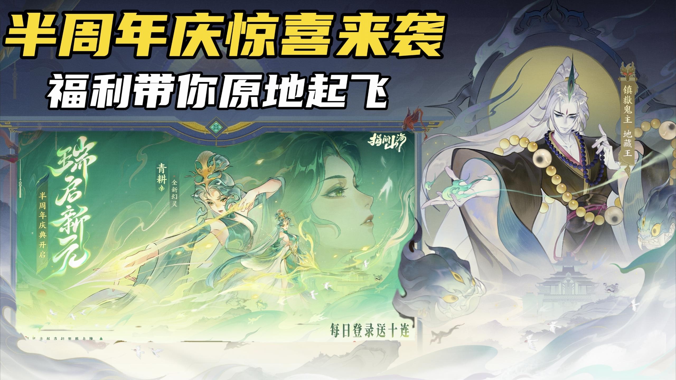 12月25日《指间山海》半周年庆典重磅开启!登录即领传说幻灵【青耕】,雷系群伤加增益禁疗,PVE与PVP 通吃!地藏王限定皮肤免费拿!每日十连抽累计120抽,还有回归享5倍奖励,山海商旅解锁,以及礼包码福利加倍,新老玩家速来! #指间山海半周年庆 #指间山海 #山海同行