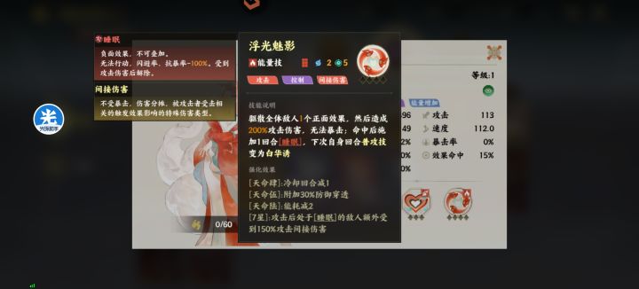 大家好!我是夏至,今天更新的是限定寒属性单体输出幻灵重明。一、幻灵定位单体攻击、拉条二、技能解读1)普攻技对单体造成伤害,命中后附加2回合出血,提升自身行动值,获得1点灵力2)回合技为获得护盾,暴击时行动值提升100%,被动技是回合开始时获得1点灵力,每点灵力减少5%受到的伤害,满灵力时能量技冷却减4,并获得1回合攻击提升50%3)能量技为减少自身1回合负面效果,获得无敌和免疫,对单体