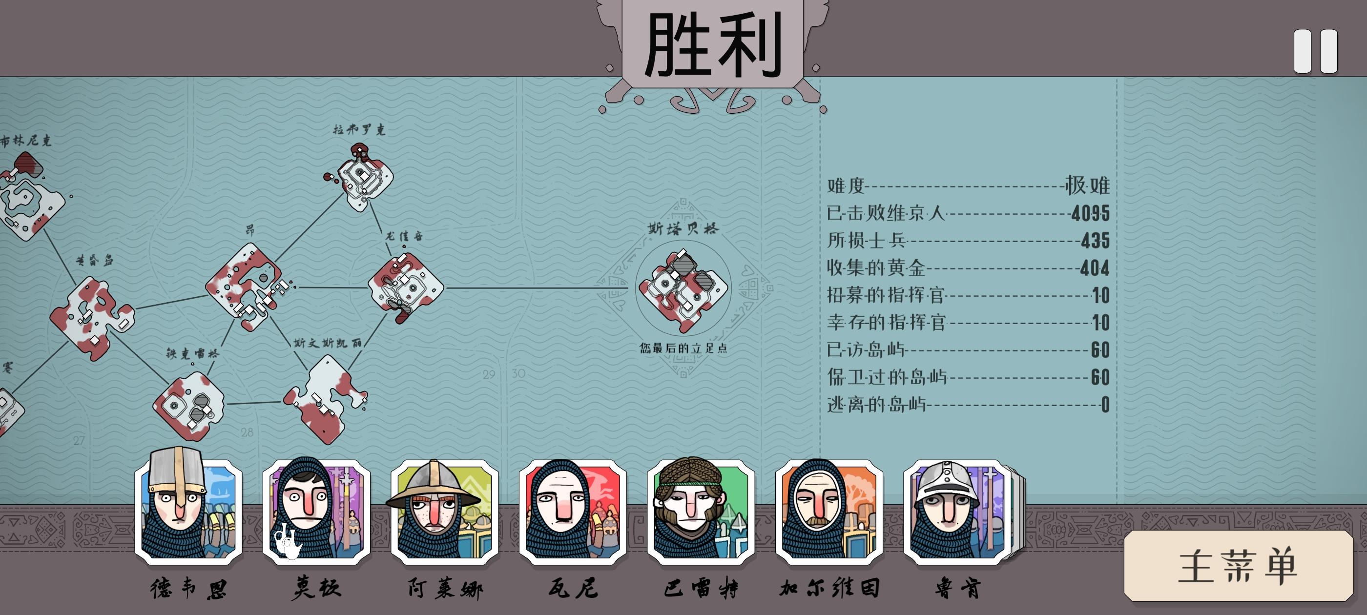 最后最后一波攻势实在太猛了。最后一波巨弩兵太多了。最后用三对性命换了长矛兵,补充完体力回来。终于打赢了。这个最后难度确实有一点。