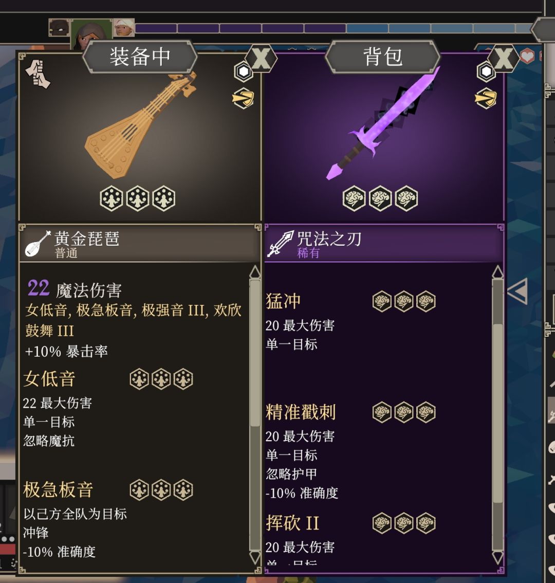 坚固的匕首作为无视护甲武器的过渡期 还是挺好用的,窃贼应该会爆 还有击打棍,一个普通平平无奇12攻敏捷系武器 但是它能尝试先攻,打3个眩晕。 单人模式sl的情况下副本或洞窟里还算好用 (前提是怪没有眩晕抗性) 刚玩的需要注意下带远程支援这个属性的武器,它可以在野外让伙伴原本距离差一些才够,但就是参加不了战斗的情况下有希望参战帮助本回合的主角。一些弓箭和火炮,火铳等等可能带有这个属性。 觉得游戏速度