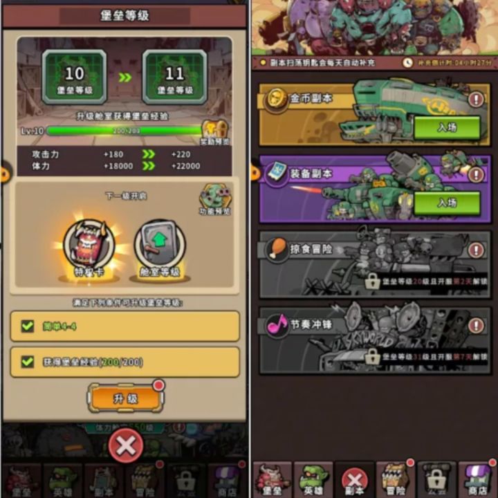 【战车DIY,越怪越强】 - 自由组装战车:攻击舱、飞弹舱、甚至火锅舱随便装,造型鬼畜到认不出! - 升级变“巨无霸”:从小破车到钢铁要塞,火力覆盖全屏,怪物直接蒸发!英雄可通过卡牌招募获得整卡或碎片,进而升级提升,增强玩家战斗能力。这种战车塔防与放置卡牌的结合,为玩家提供了丰富的策略选择和战斗乐趣。游戏采用放置推关 + 波次挑战模式,无体力能量消耗,玩家可安心放置操作,享受割草快感。#