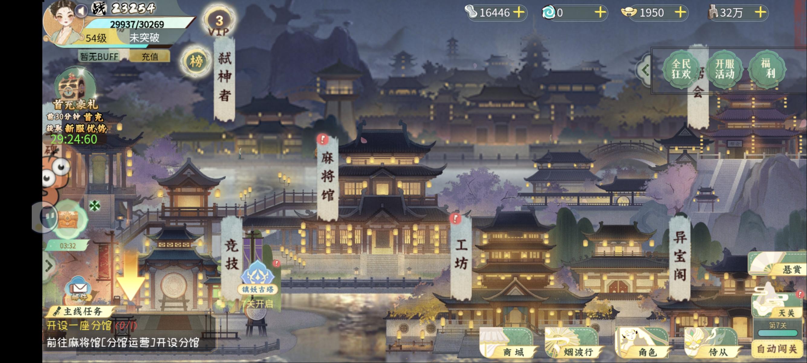 界面ui感觉很繁复,像页游,特别对战系统通知那个显示特别粗糙和丑陋,手游的话可以再修改修改。画风说实在其实挺好看的,古风风韵有了,这个挺有特色的。玩法其实也挺有意思的,这个麻将还是挺好玩的hhh