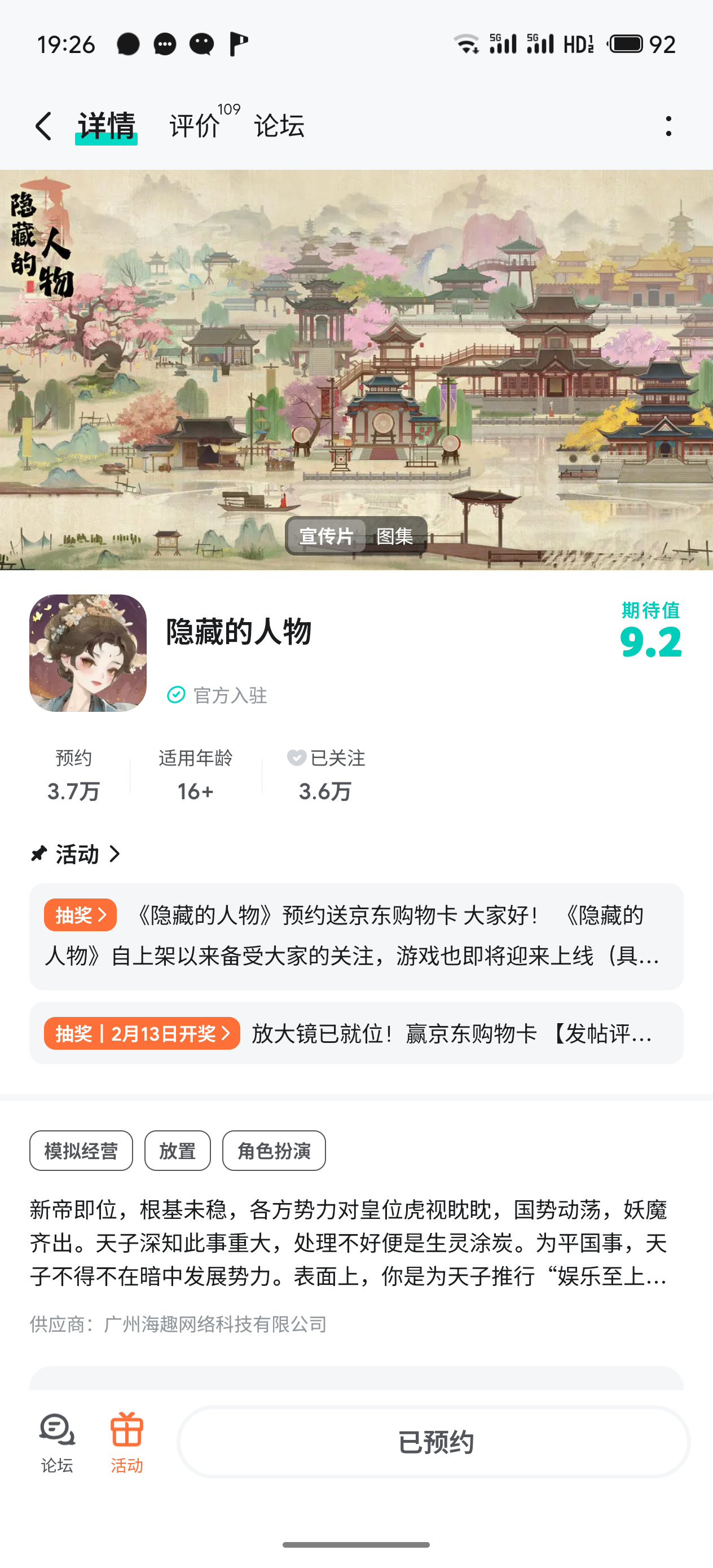 已关注预约,希望游戏红红火火越来越好