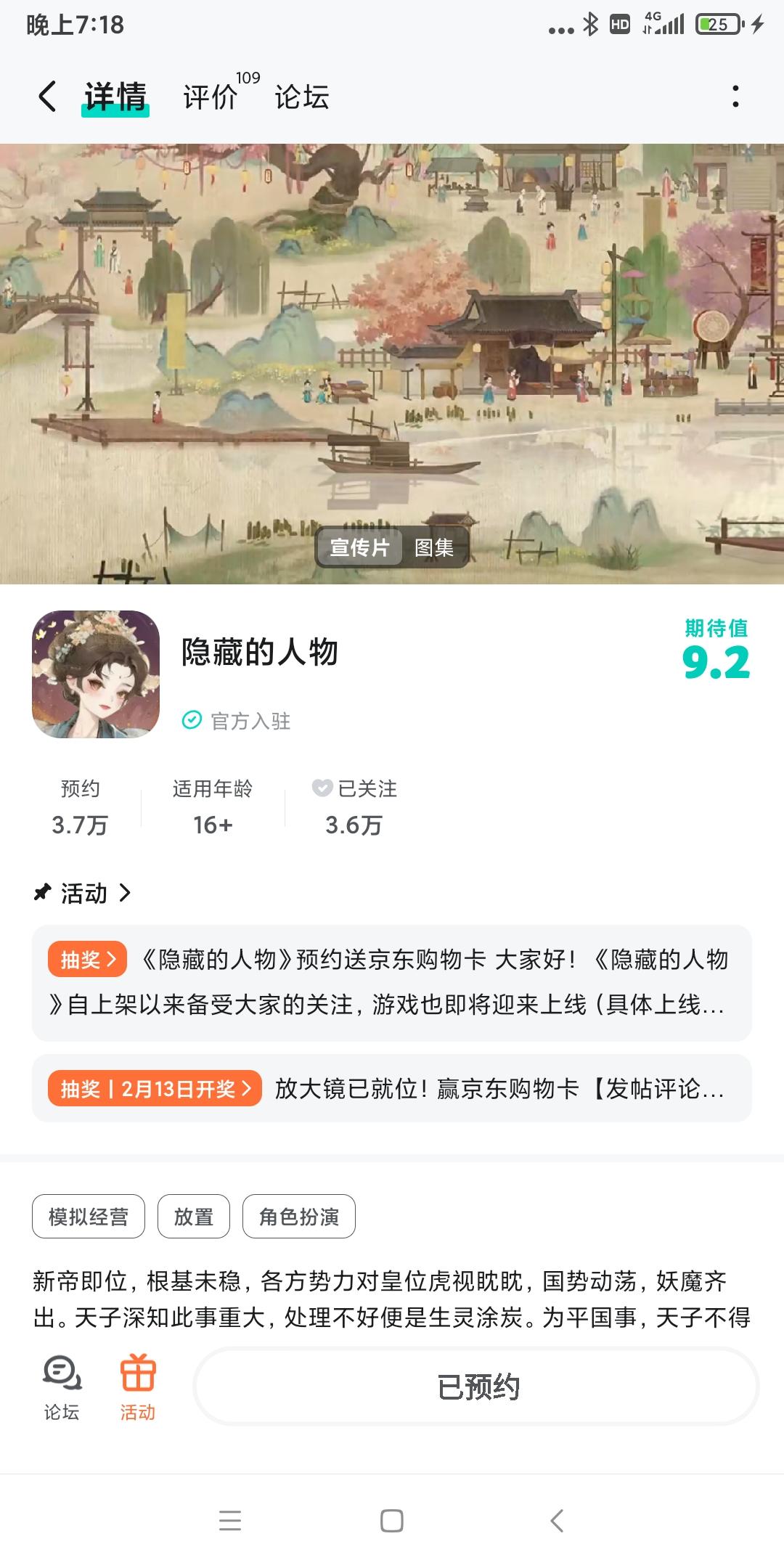 已关注,预约,期待一下隐藏的人物上线,希望隐藏的人物越来越好,蒸蒸日上,人气超多。