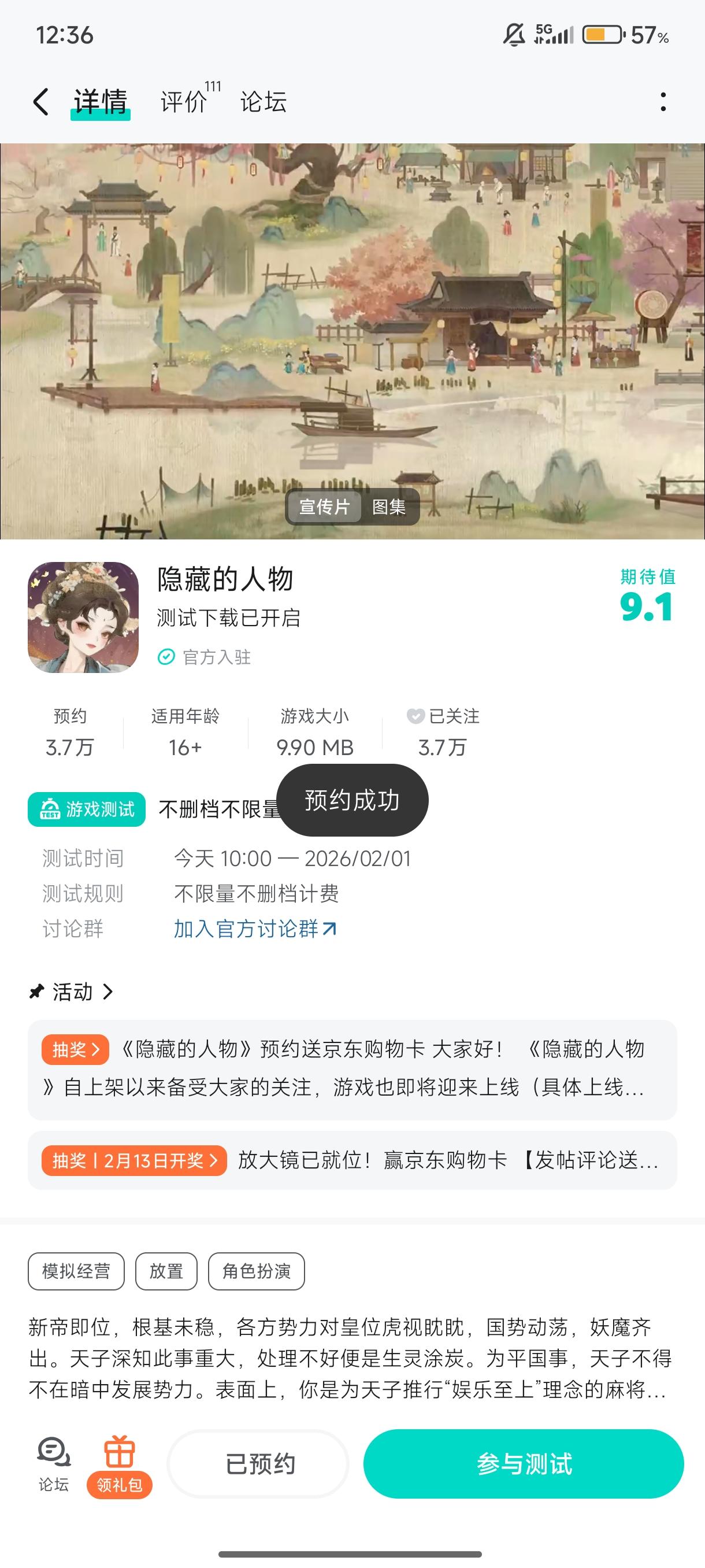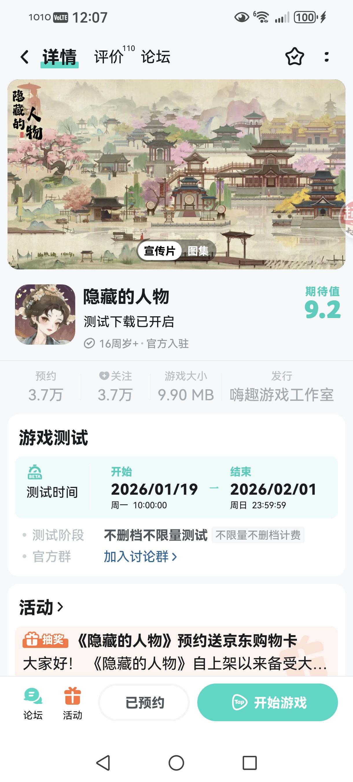 大家好!《隐藏的人》将于 2026 年1月19日10:00开启不删档测试服,感谢大家对我们游戏的关注和支持。现在,大门已缓缓开启。请带上你的好奇心和放大镜,在我们精心策划的活动中,去邂逅那些意想不到的角色,聆听他们无声的诉说。你,准备好开始这场寻宝之旅了吗?活动一、进群福利进群礼包:元宝*100、侍从进阶石*10加入,联系客服QQ:2757945810领取礼包码。活动二、预约/下载赢京东购