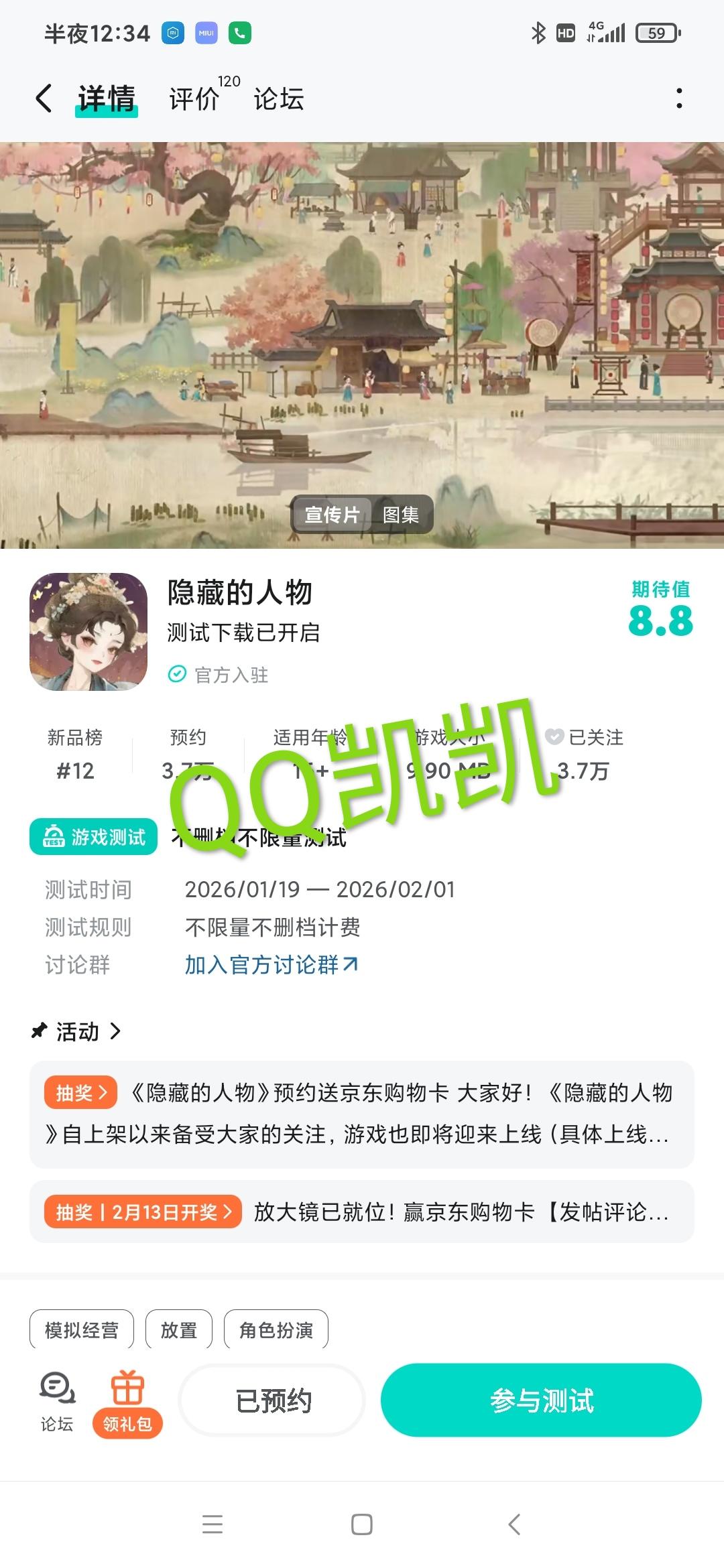 大家好!《隐藏的人》将于 2026 年1月19日10:00开启不删档测试服,感谢大家对我们游戏的关注和支持。现在,大门已缓缓开启。请带上你的好奇心和放大镜,在我们精心策划的活动中,去邂逅那些意想不到的角色,聆听他们无声的诉说。你,准备好开始这场寻宝之旅了吗?活动一、进群福利进群礼包:元宝*100、侍从进阶石*10加入,联系客服QQ:2757945810领取礼包码。活动二、预约/下载赢京东购