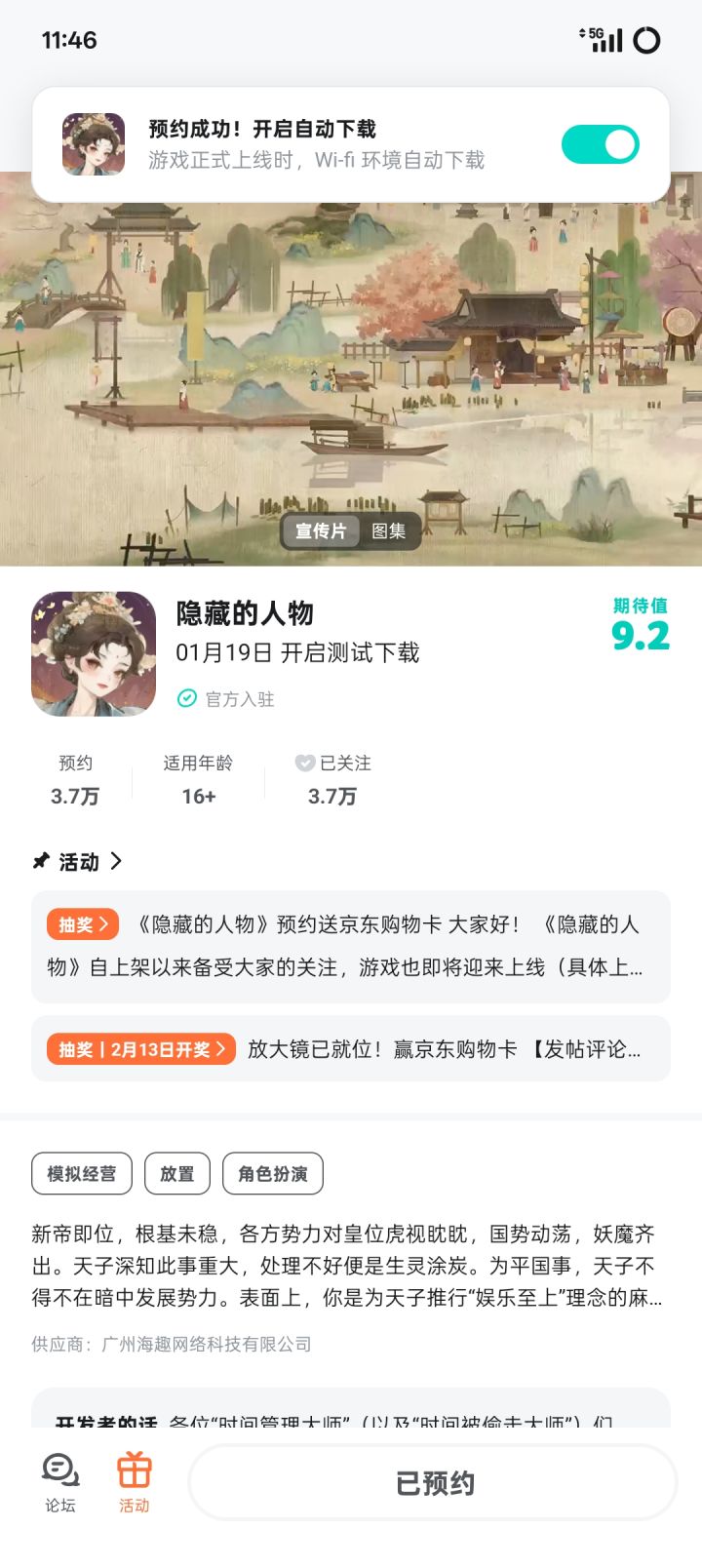 大家好!《隐藏的人》将于 2026 年1月19日10:00开启不删档测试服,感谢大家对我们游戏的关注和支持。现在,大门已缓缓开启。请带上你的好奇心和放大镜,在我们精心策划的活动中,去邂逅那些意想不到的角色,聆听他们无声的诉说。你,准备好开始这场寻宝之旅了吗?活动一、进群福利进群礼包:元宝*100、侍从进阶石*10加入,联系客服QQ:2757945810领取礼包码。活动二、预约/下载赢京东购
