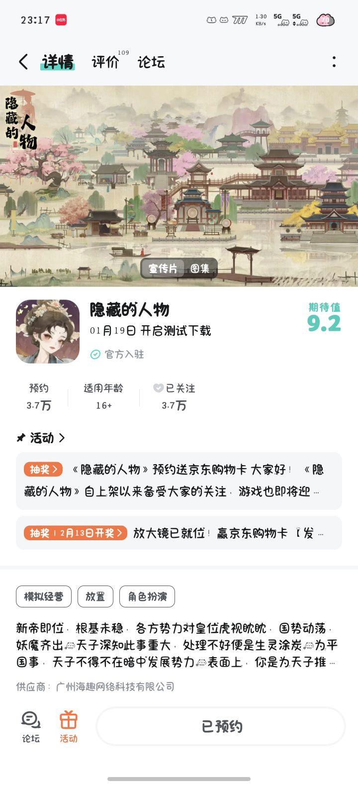 希望游戏早日公测,人气越来越高!