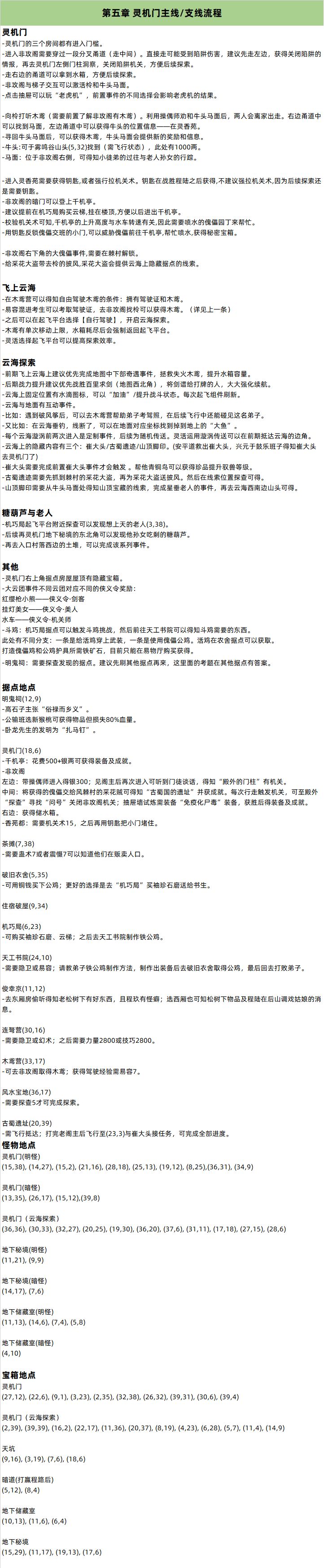 第五章 灵机门主线/支线流程