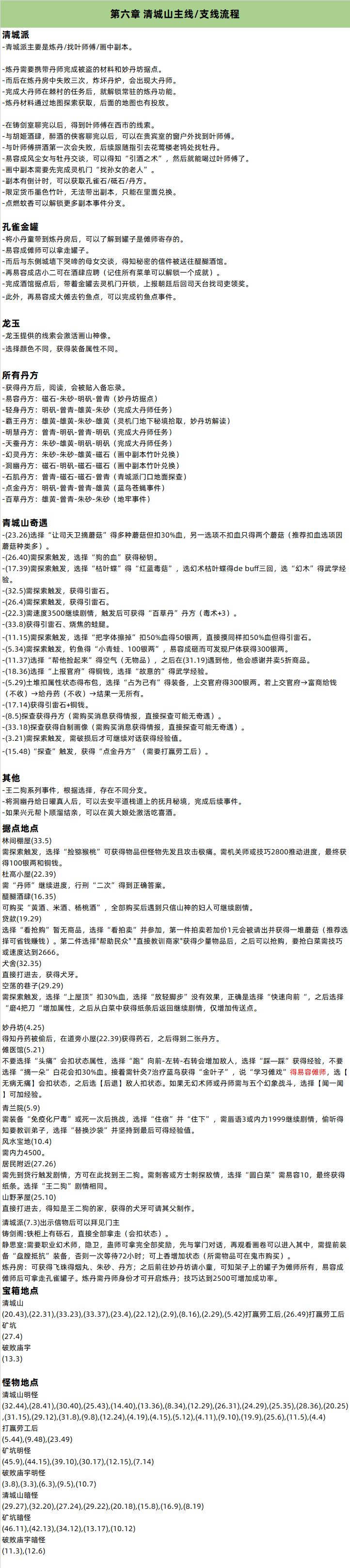 第六章 清城山主线/支线流程