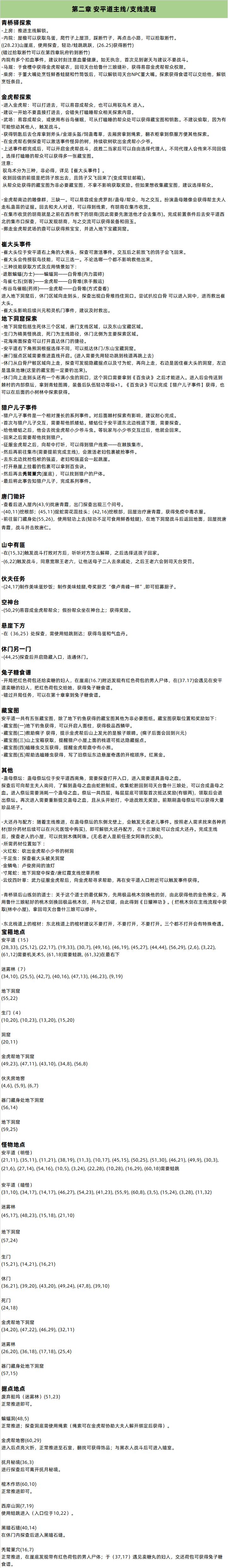 第二章 安平道主线/支线流程