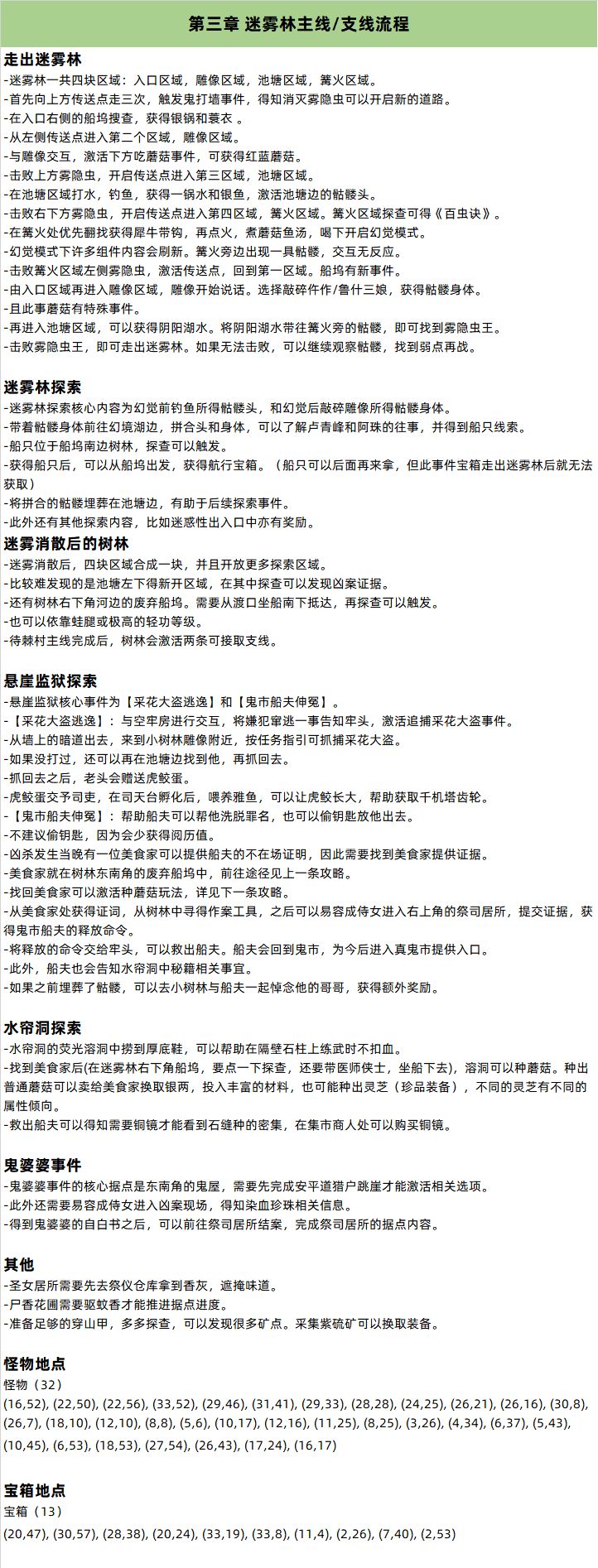 第三章 迷雾林主线/支线流程