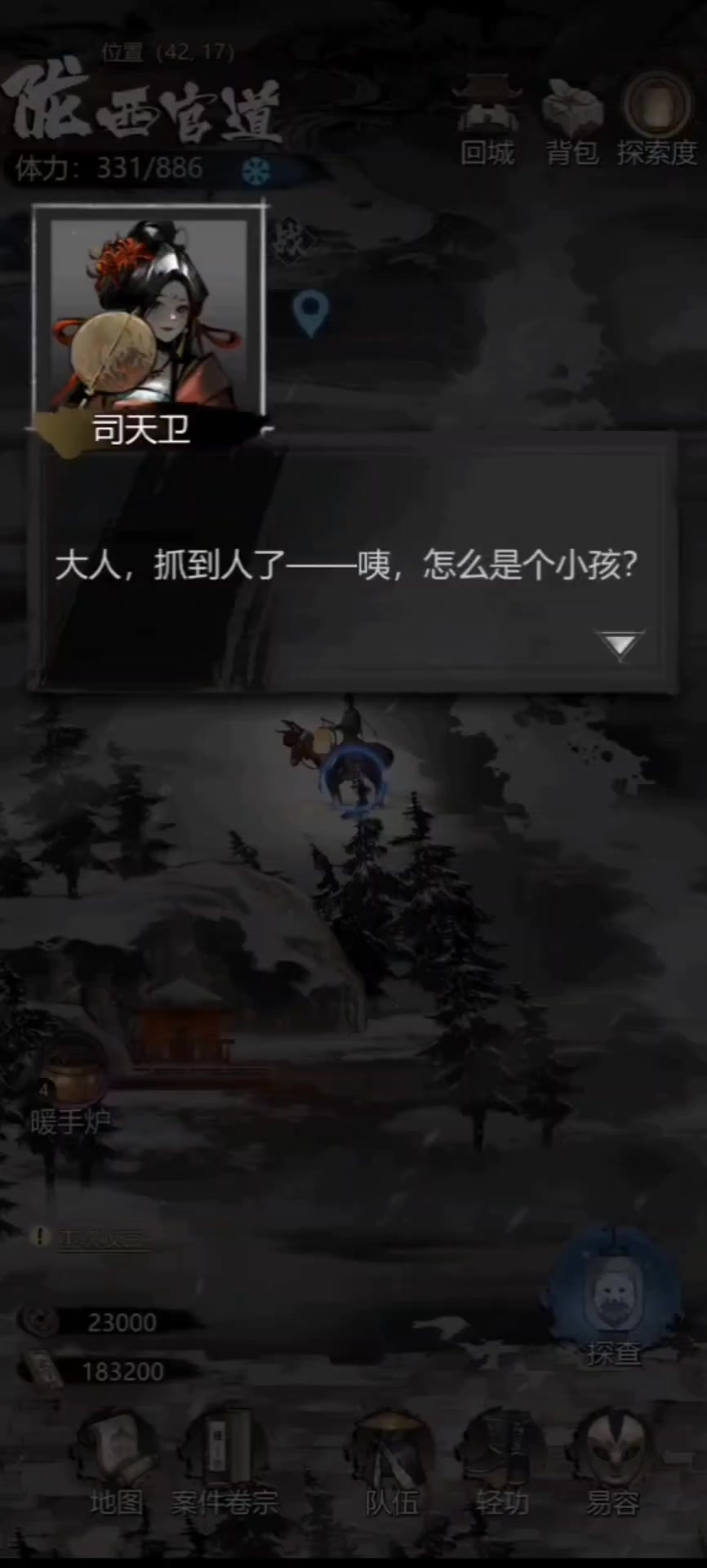 重要的事情说三遍: 这只是我的个人清图记录,非标准攻略,肯定是有弯路的!!! 这只是我的个人清图记录,非标准攻略,肯定是有弯路的!!! 这只是我的个人清图记录,非标准攻略,肯定是有弯路的!!! 主线第九章 雪夜红狐,陇西官道大部分探索 马厩老头的押镖任务建议选择免费不要钱,给一件不错的衣服加暴击,部分时候打boss可能需要暴击发力才能过。