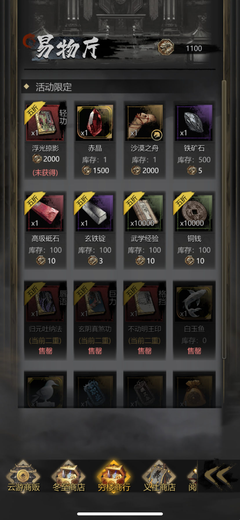 穷楼商店兑换完一本秘籍就会马上出新的,总共十几本 顺序跟司天录那个自选箱子里的一样,所以尽快通关打到上限吧,这样每周能换一本。