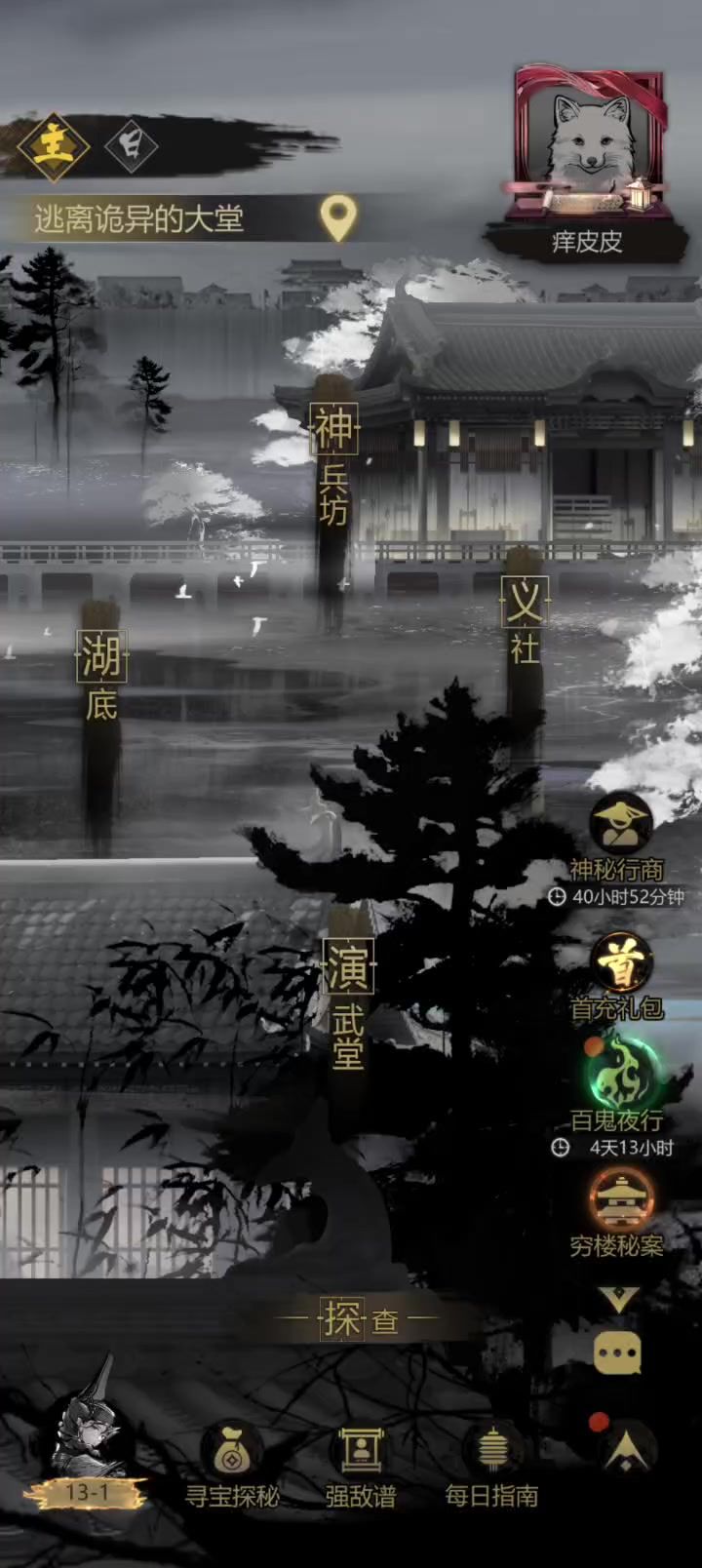 12章用时1月12天,相对于11章来说快了,主要是最后2个boss逃课了(13章算第1个也能逃),这时间主要是卡铁的时间。 第12章的重锤傀儡(通译24)和第13章第一个boss红眼山羊(通译25),都可以不用探破过,重锤要等武器,山羊是可以逃课的主。我到现在通译24都还差42点才够。 额外说一下,不氪穷楼司天令的情况下,打真堂主玄刺伤害不升2品有点难,伤害不够,后面把济世换成入世,入世奶能增加渗