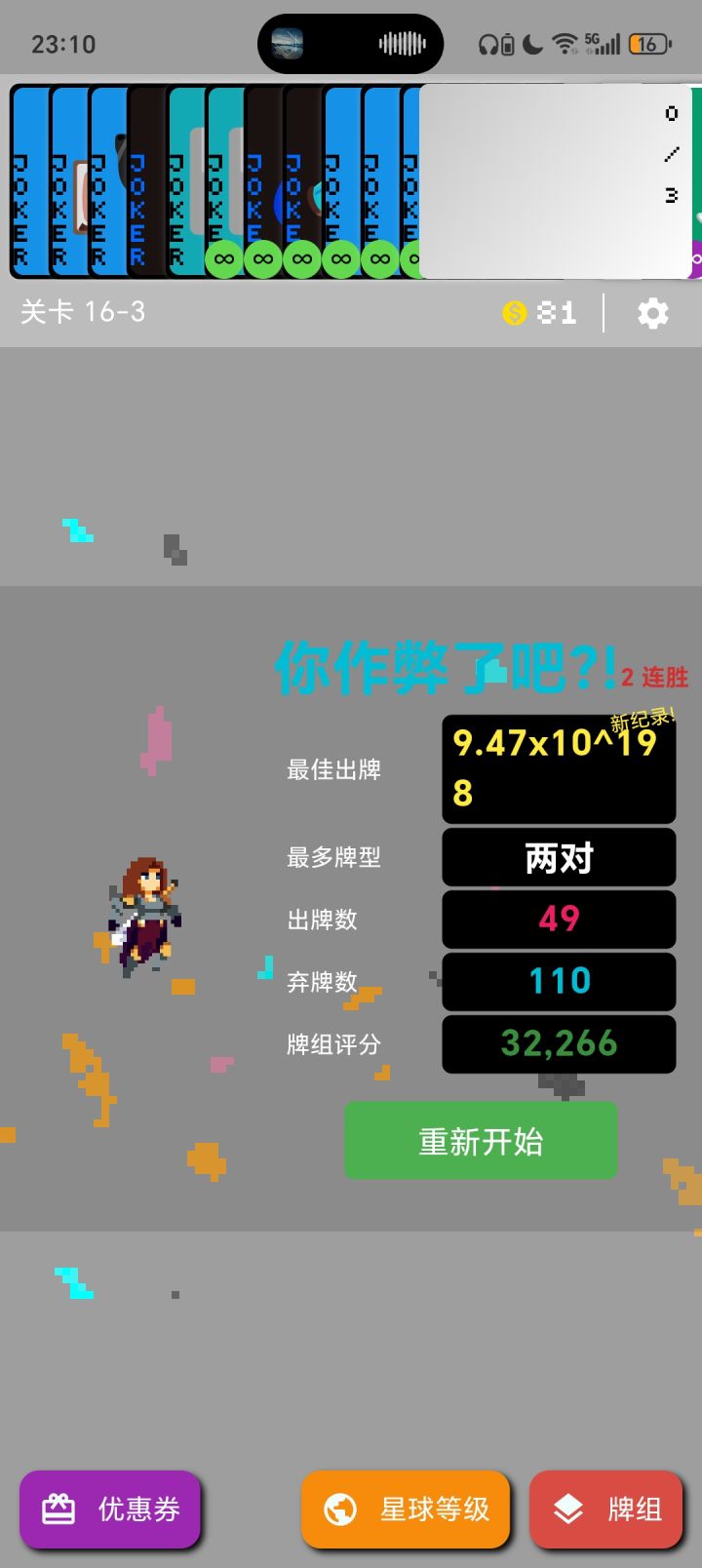 同花顺100多级每一关都是一张牌秒杀,无尽模式也就16-3关。