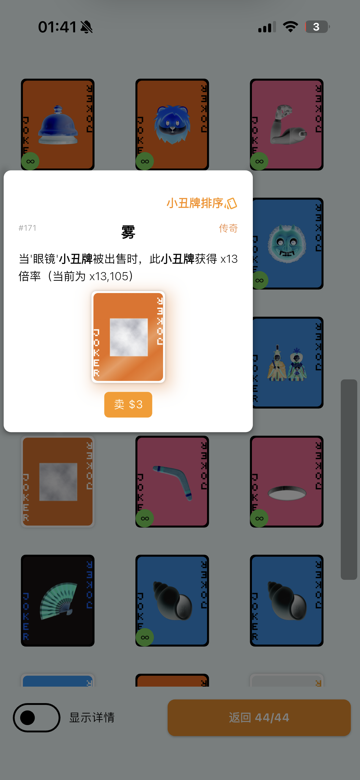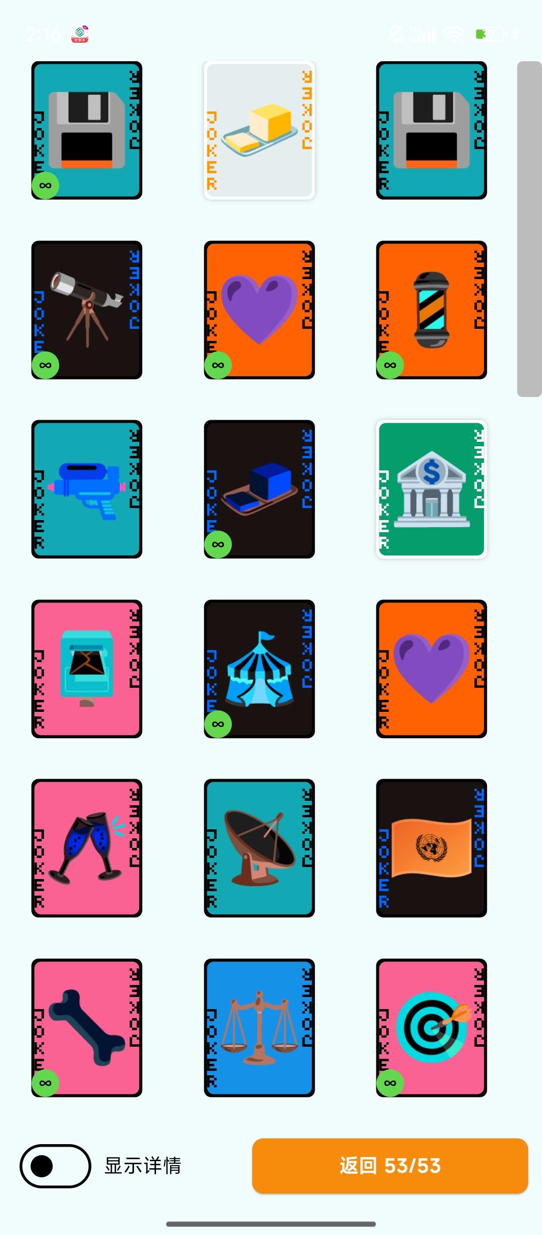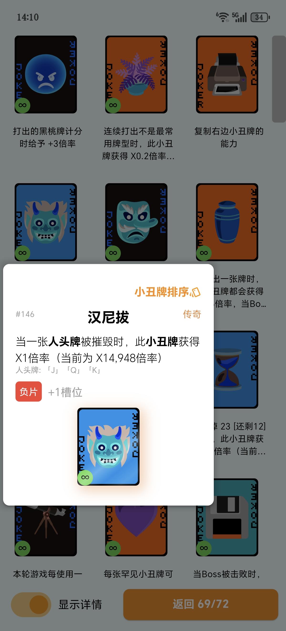 展开成和优惠券界面类似的样子,小丑牌多了的话后面的被挡住了看不到