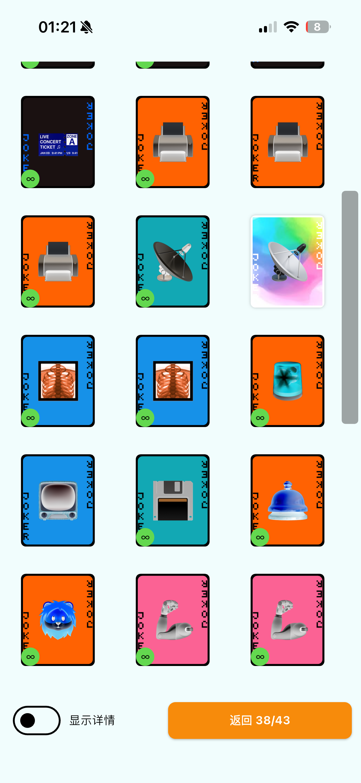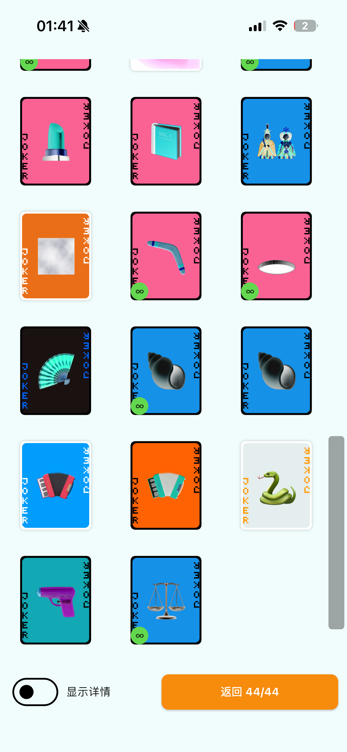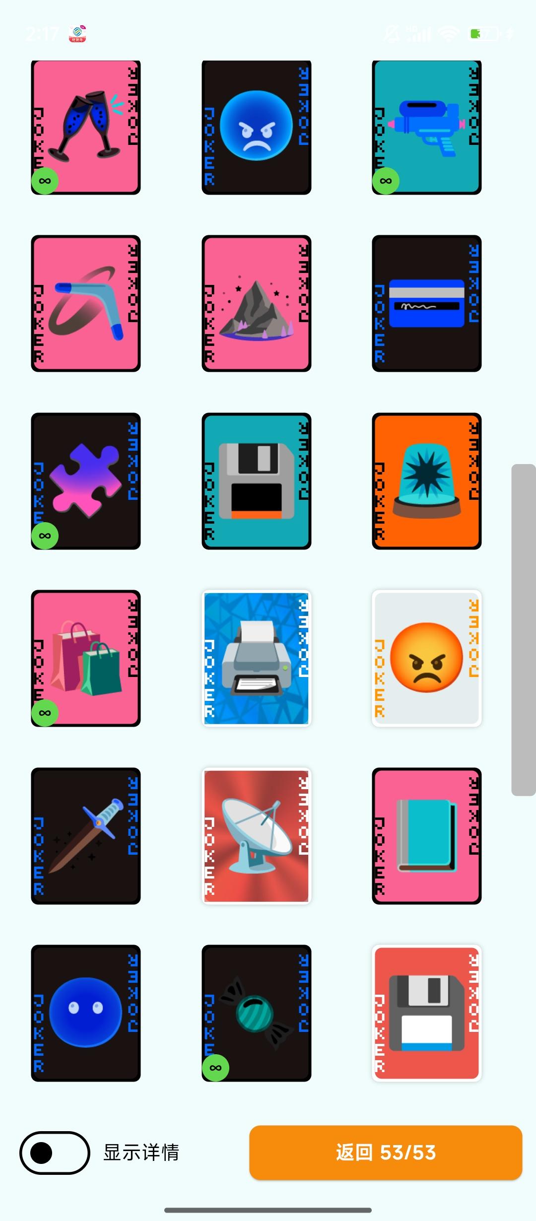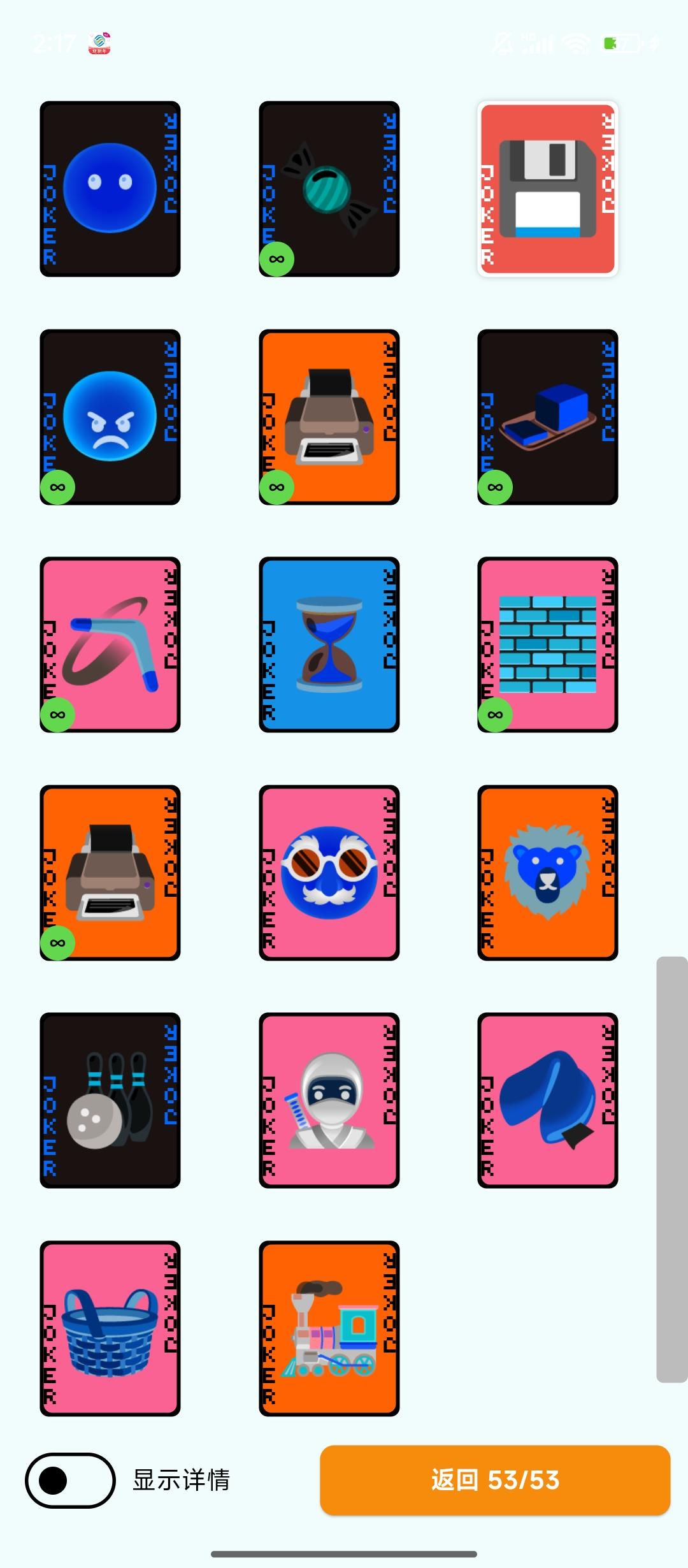 展开成和优惠券界面类似的样子,小丑牌多了的话后面的被挡住了看不到