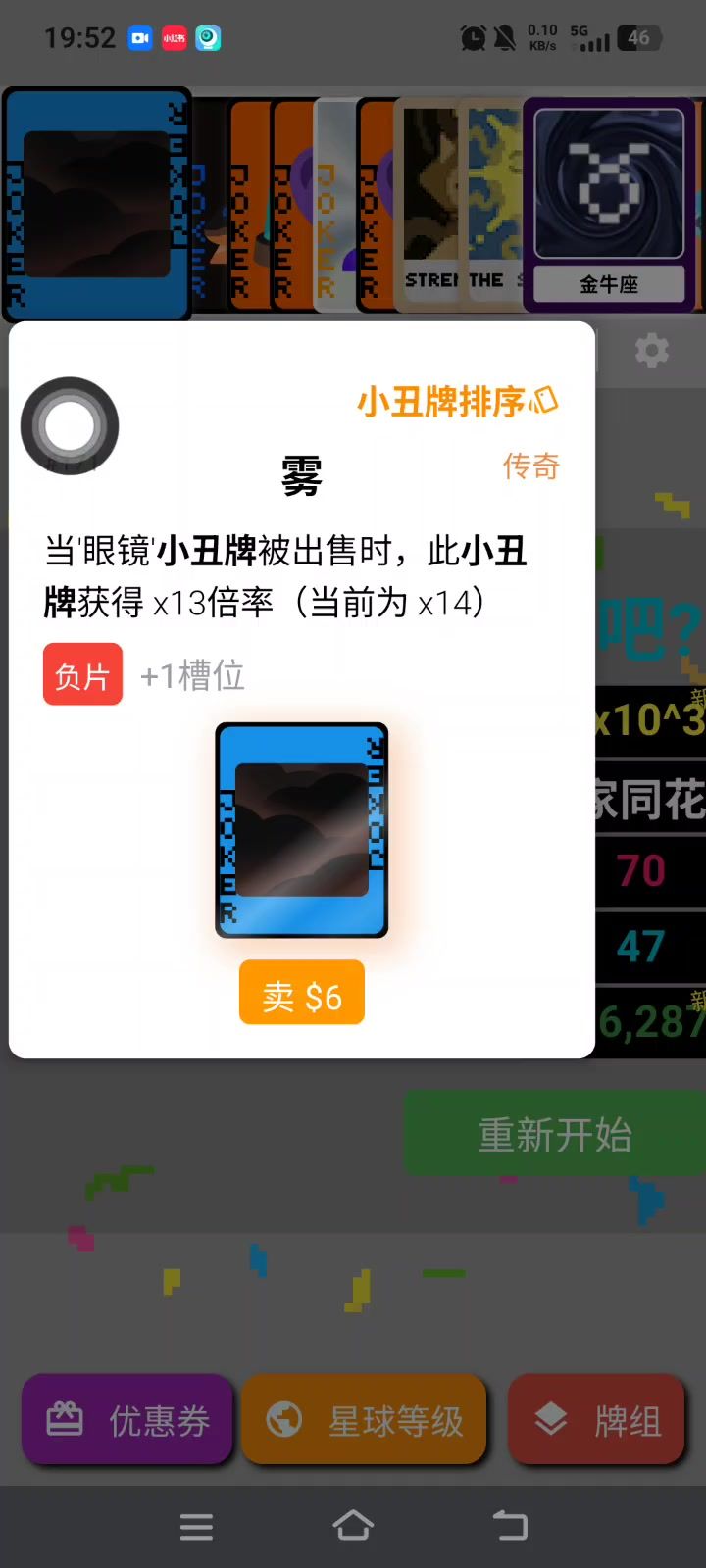牌全是多彩红印玻璃黑桃Q,星球牌对子320级,刷商店量也见那张小丑,300多次