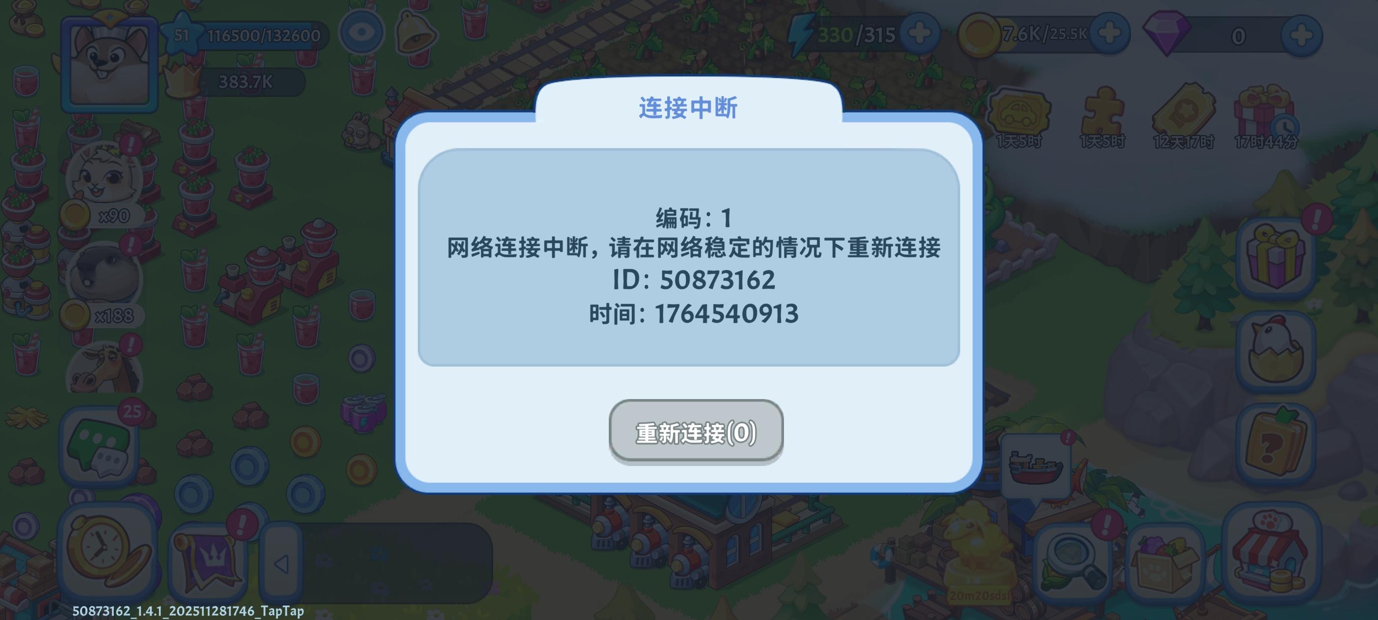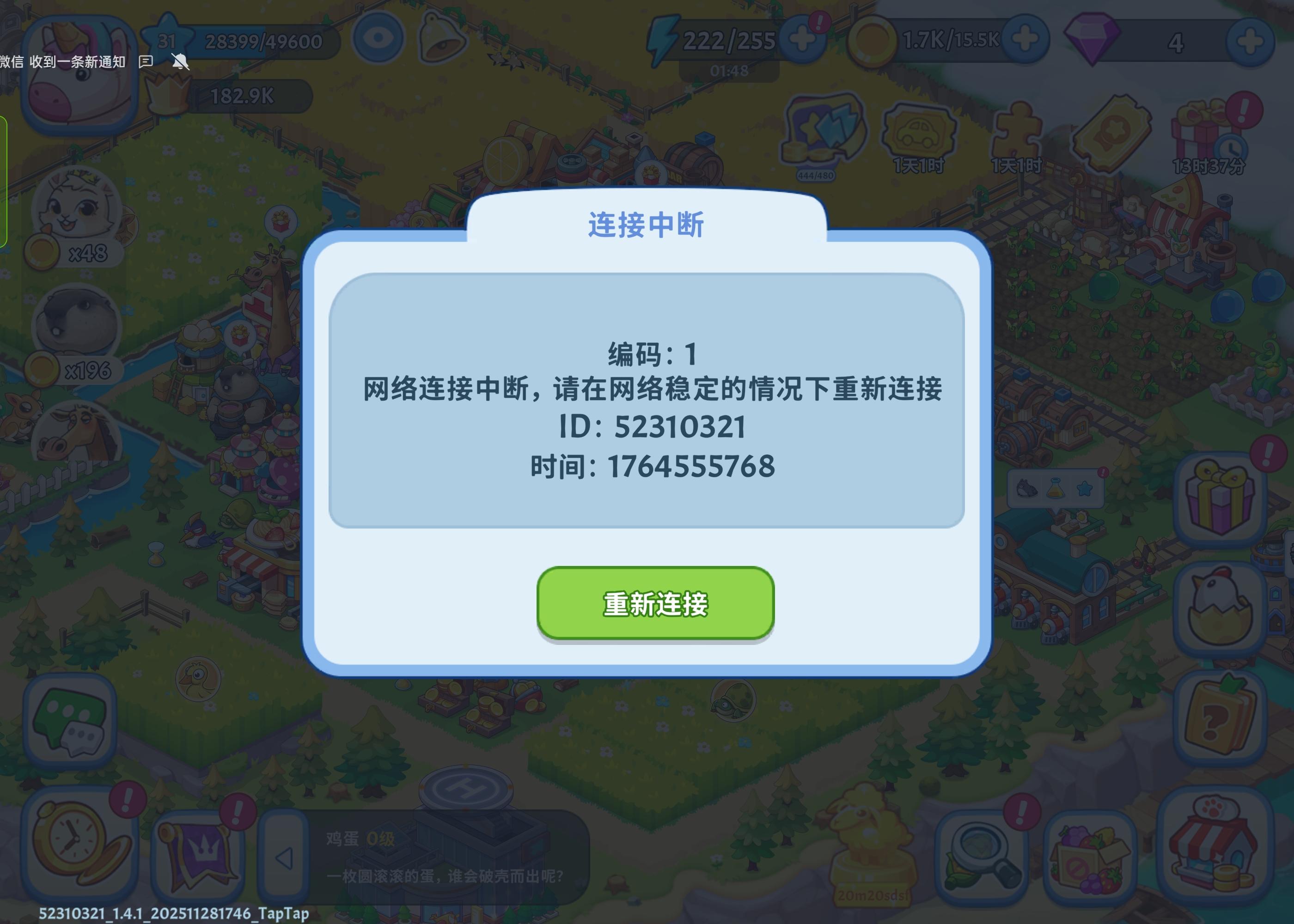 上号过十几秒就显示网络连接中断,换网重进,重新连接都没用,现在只能上线种种地,这更新还更出毛病来了