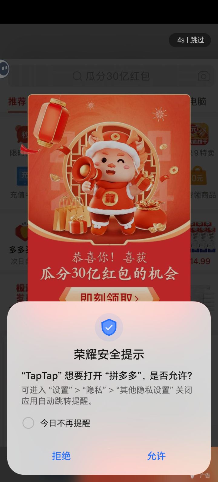 看简介感觉挺有意思的,没想到广告多得离谱,游戏开屏还没加载完都要给我跳拼多多去了,进入首页又是广告,进到游戏中更是点一下一个广告弹窗😓