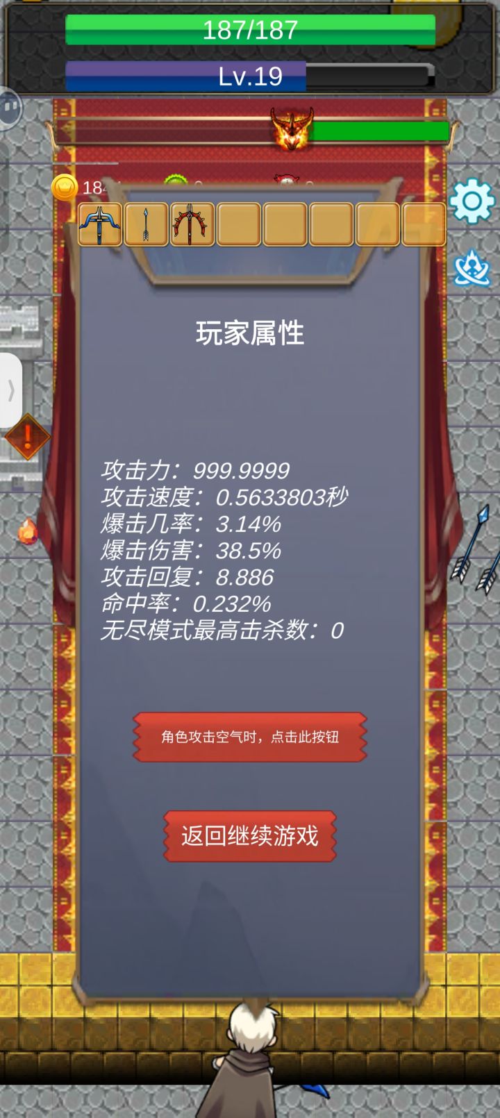 两张图一张是200层通关图,一张是铁匠铺图。最后拉的攻速武器到120级,第二次尝试就过了。转生也真的是只重置关卡和天赋,宝石神器武器宠物皮肤这些都不重置,转生完就是一路平推,最后还是会卡在第二次减命中和减暴击buff那里。宝石和神器等级起来之后,命中才可能不缺。暴击就只能看武器强化了。要是前面没卸载,估计五次都转完了。就这吧,看下一次更新什么新内容。