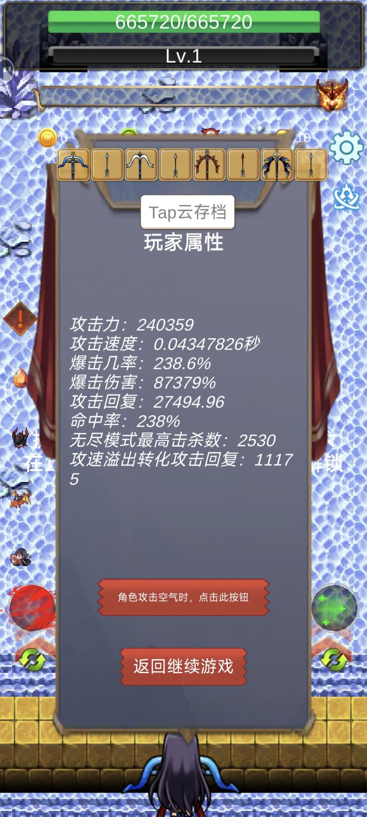 两张图一张是200层通关图,一张是铁匠铺图。最后拉的攻速武器到120级,第二次尝试就过了。转生也真的是只重置关卡和天赋,宝石神器武器宠物皮肤这些都不重置,转生完就是一路平推,最后还是会卡在第二次减命中和减暴击buff那里。宝石和神器等级起来之后,命中才可能不缺。暴击就只能看武器强化了。要是前面没卸载,估计五次都转完了。就这吧,看下一次更新什么新内容。