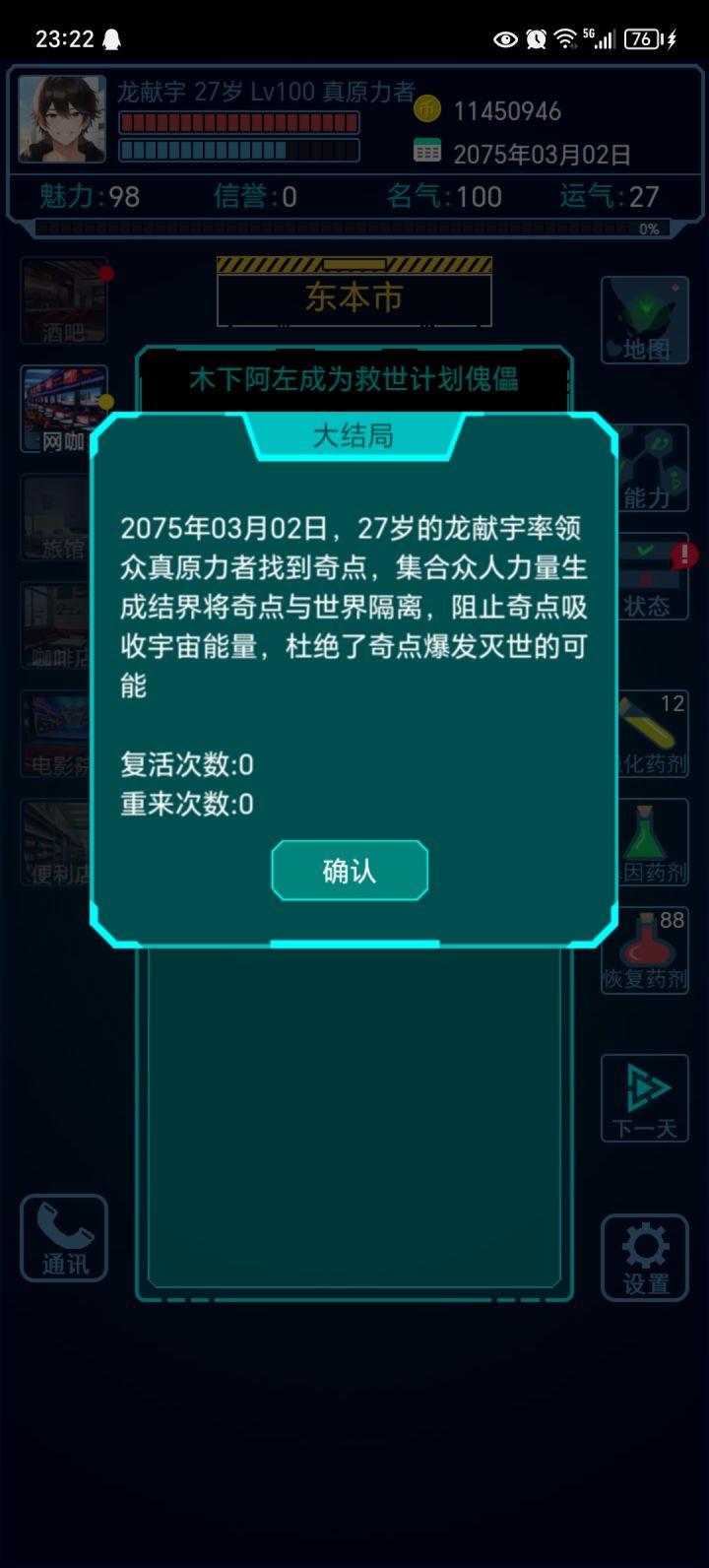 救世之后去袭警坐牢,坐十年,硬说城市全沦陷了,好结局之后跳了个坏结局重开了哈哈哈