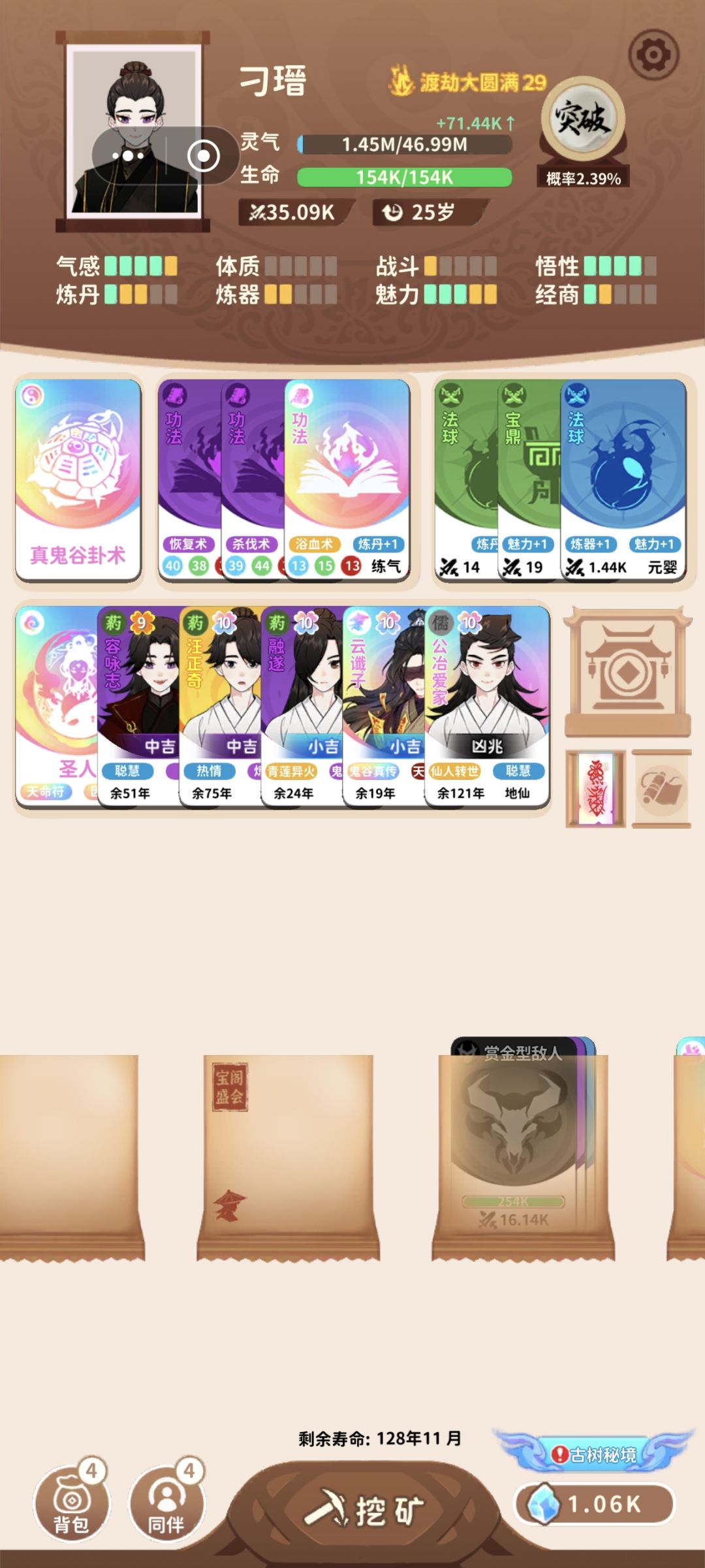 新手可以断网改日期,然后进退游戏就可以第一天卡满全奇缘道友,然后做一下小狐狸的剧情就可以拿到木戒传承,用木戒做一下影子就可以拿到万魂幡,万魂幡就是这游戏对新手最友好的传承,只需要一本开局功法就可以地仙飞升并且不憋尿