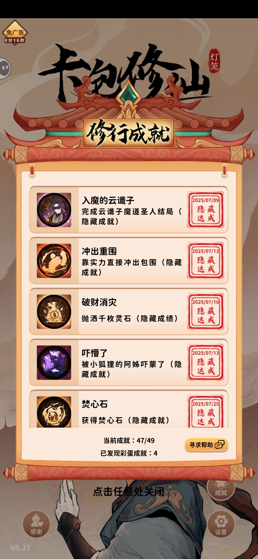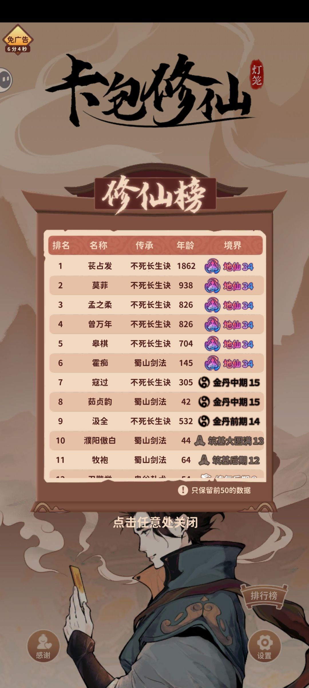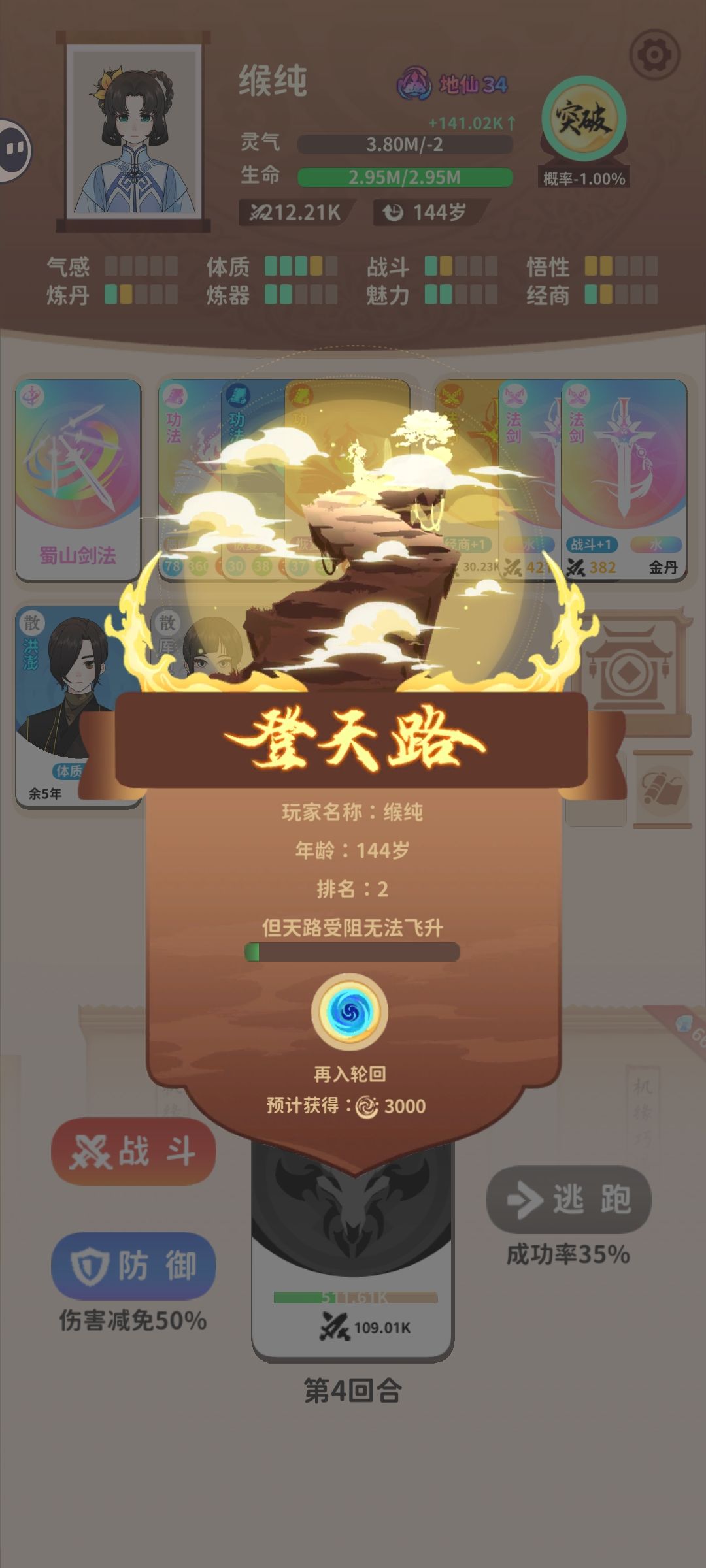 开局传承选长生,属性堆生命+开采灵石+经商,功法优先选恢复术+枯木逢春(没有两个功法槽位的需要先在星图里花100点数开),卡包只开商店买突破丹+广告卡包(可选),然后挂个连点器挖矿躺着飞升,无聊但简单。