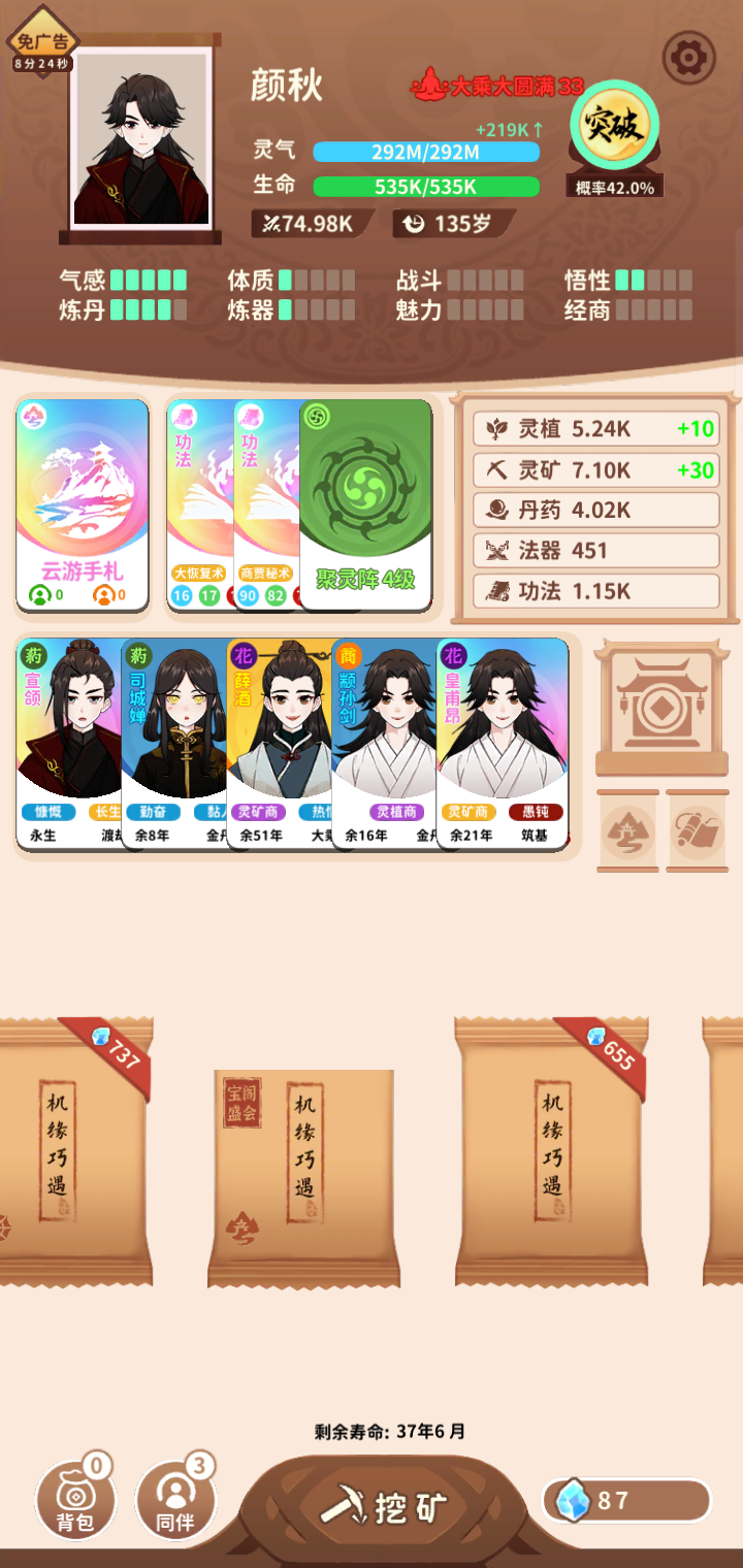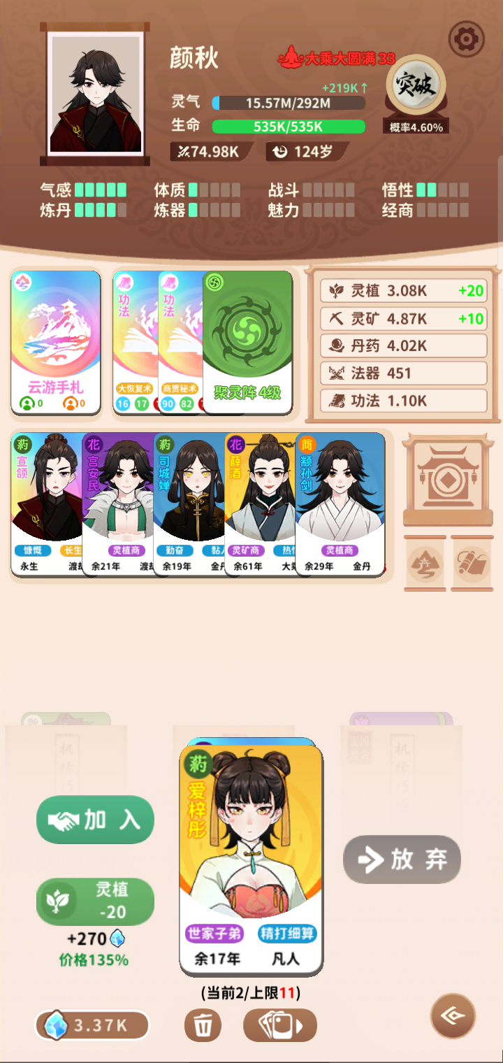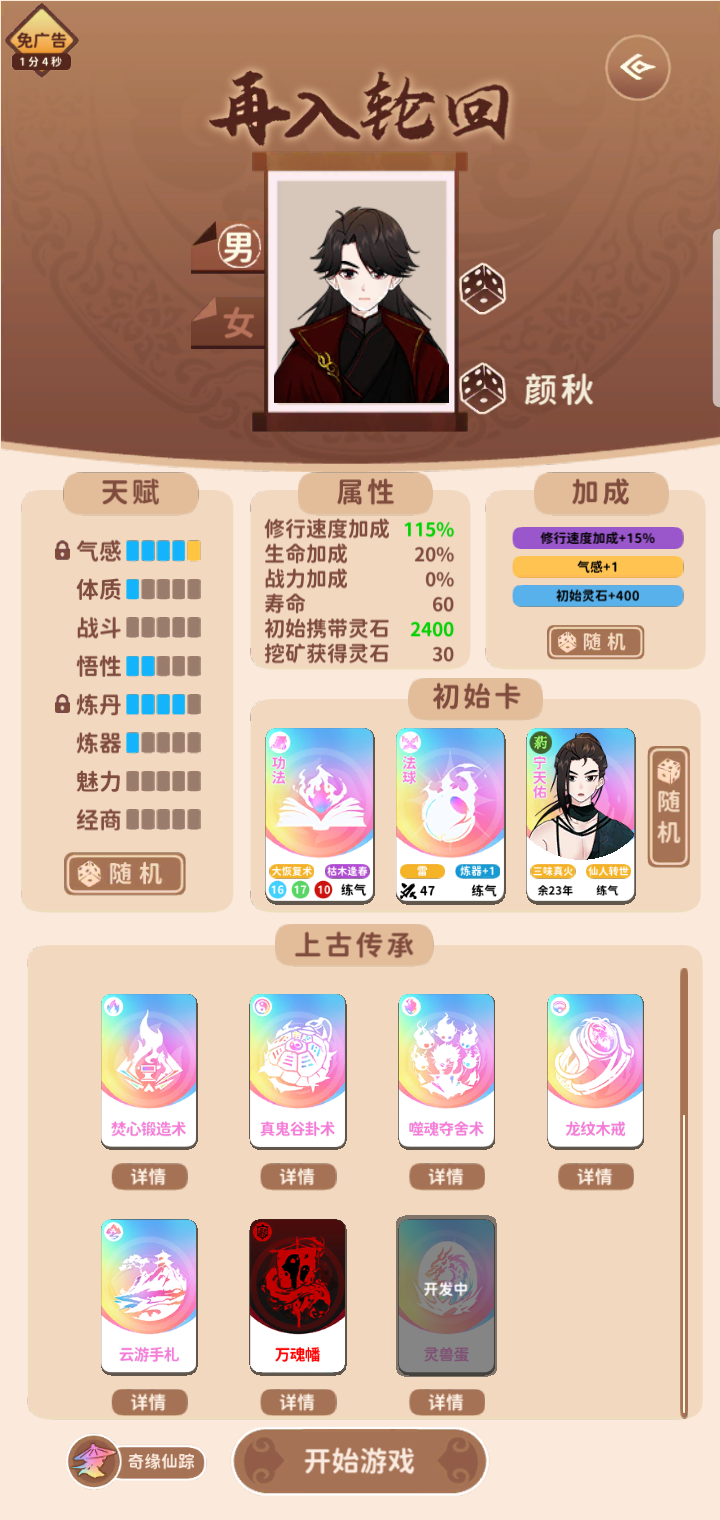 云游,但是不交易无经商无灵兽大概就是增加500%修炼难度没有武器少个功法,凡人怎么玩就怎么玩,这套玩法经商没什么大用,灵兽那个是我单纯忘带了,好几次差点被打死QvQ我刷的这一套很多传承都能用的,可以用来参考一下,比夺舍本体999%修炼难度成仙还要慢是我没想到的
