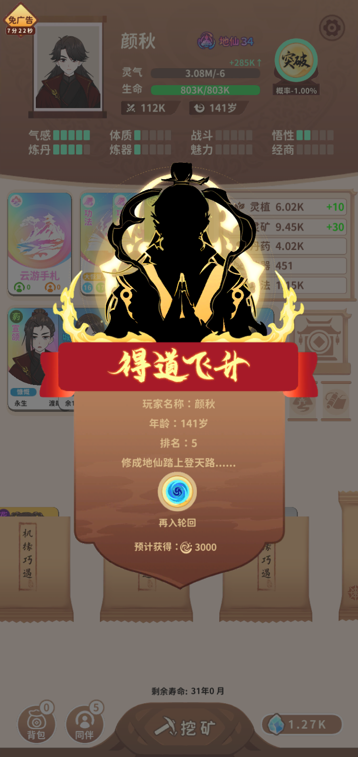噬魂有bug。伙伴飞升地仙,不会留在界面(直接死了给我留遗物),所以压根夺舍不了地仙并飞升。