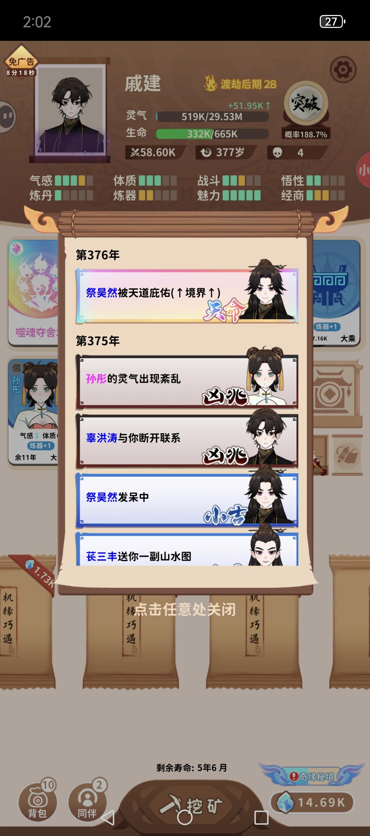 1万8000多岁,终于成仙了,满气感+锻体仙术+锻体术,长生不死诀