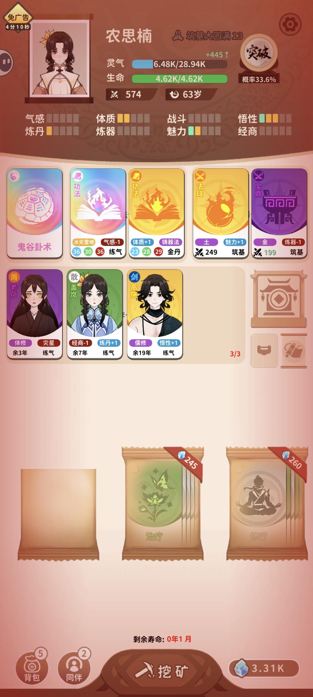 全成就拿下,最麻烦的就是登天路了,纯磨时间🥲其次是那个狐狸宠物,毕竟目前版本宠物用处非常小,单独去刷就是浪费时间,平时点又污染卡池,最后是搞了个长生,刷了快一千岁。简单说一下游戏,其实重要的就两条,灵气和突破概率,每种传承就是一个职业,能解决突破概率就想办法凑灵气(气感,实际上灵气根本不是问题,不考虑上榜的话),能有大量灵气供应的就凑突破概率(炼丹,药王谷,雨润万物,入土为安),套路都大同小异