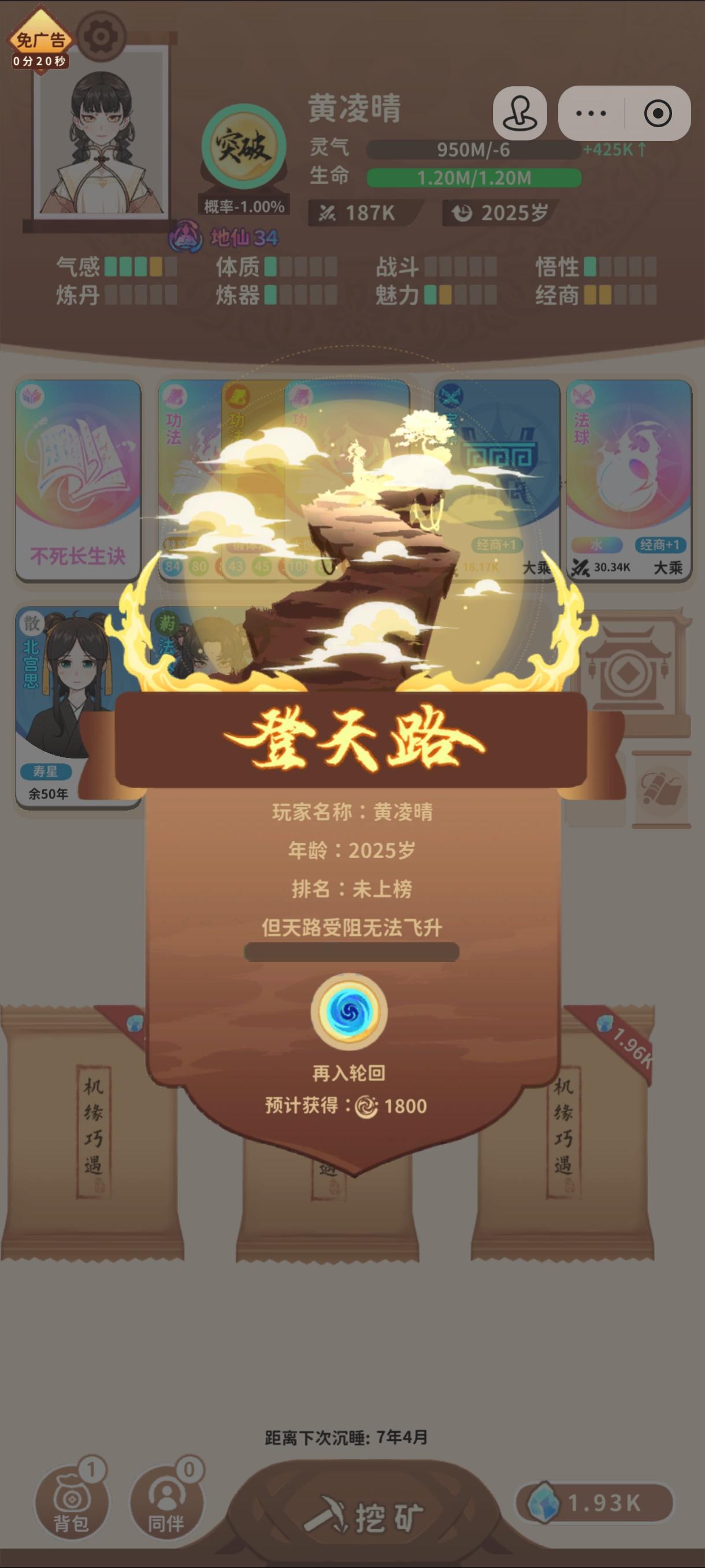 不死+恢复+枯木逢春,狂点,硬是熬到登仙