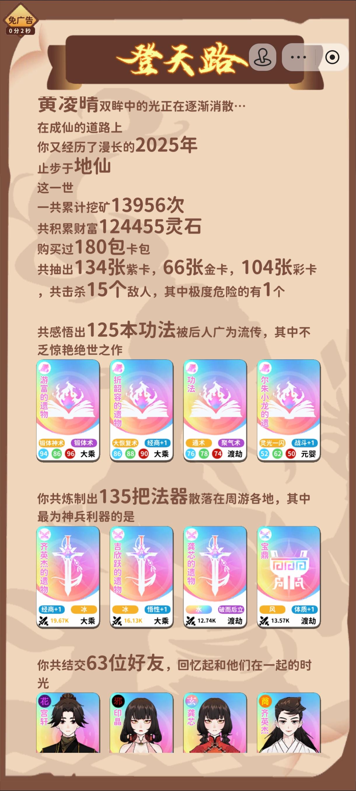 获取《真·鬼谷八卦》1.点击再入轮回——左下角奇缘仙境,选中云谶子(高亮)后开始游戏2.第一次相遇云谶子(紫衣人)全选第一个选项不救未来入魔的小孩3.第二次相遇,选“与他何干”然后“救人”,云谶子入队成功4.点击云谶子显示任务:结交两位满气运的道友既道友卡左上角气运数值为10的道友两次5.完成结交任务后,云谶子离队时选择清酒或浊酒均可。6.第三次相遇云谶子成圣,获得《真·鬼谷八卦》云