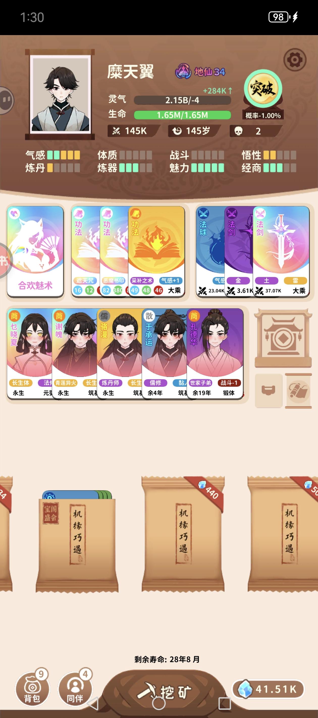 全成就拿下,最麻烦的就是登天路了,纯磨时间🥲其次是那个狐狸宠物,毕竟目前版本宠物用处非常小,单独去刷就是浪费时间,平时点又污染卡池,最后是搞了个长生,刷了快一千岁。简单说一下游戏,其实重要的就两条,灵气和突破概率,每种传承就是一个职业,能解决突破概率就想办法凑灵气(气感,实际上灵气根本不是问题,不考虑上榜的话),能有大量灵气供应的就凑突破概率(炼丹,药王谷,雨润万物,入土为安),套路都大同小异