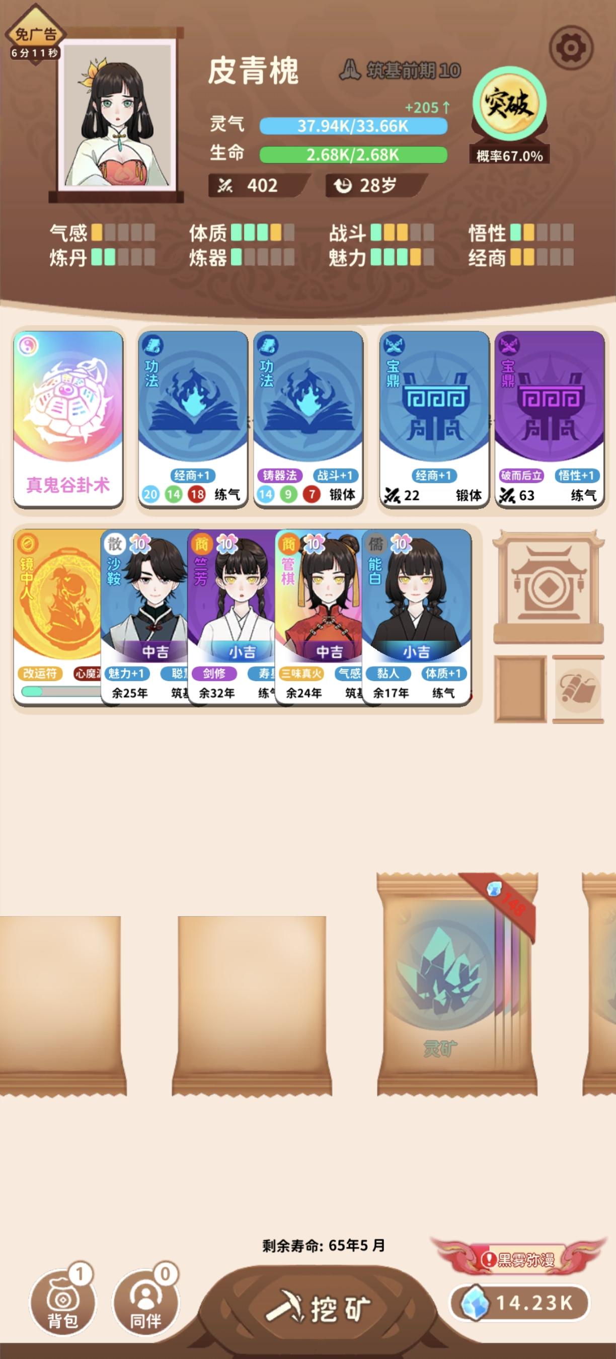 15岁结交了练气期的道友,一路跟着我从练气走到了化神,经过了22次境界提升,一直没有遇到自己的死劫,商贾出身,世家子弟,妥妥的主角模板啊,他的履历:21岁 炼丹炸炉38岁 神识受损42岁 炼器炸炉63岁 灵石被盗68岁 心魔87岁 灵石再次被盗118岁 武器爆了寿命用完之前我会一直看着这位道友能走到什么境界持续更新。。。。。