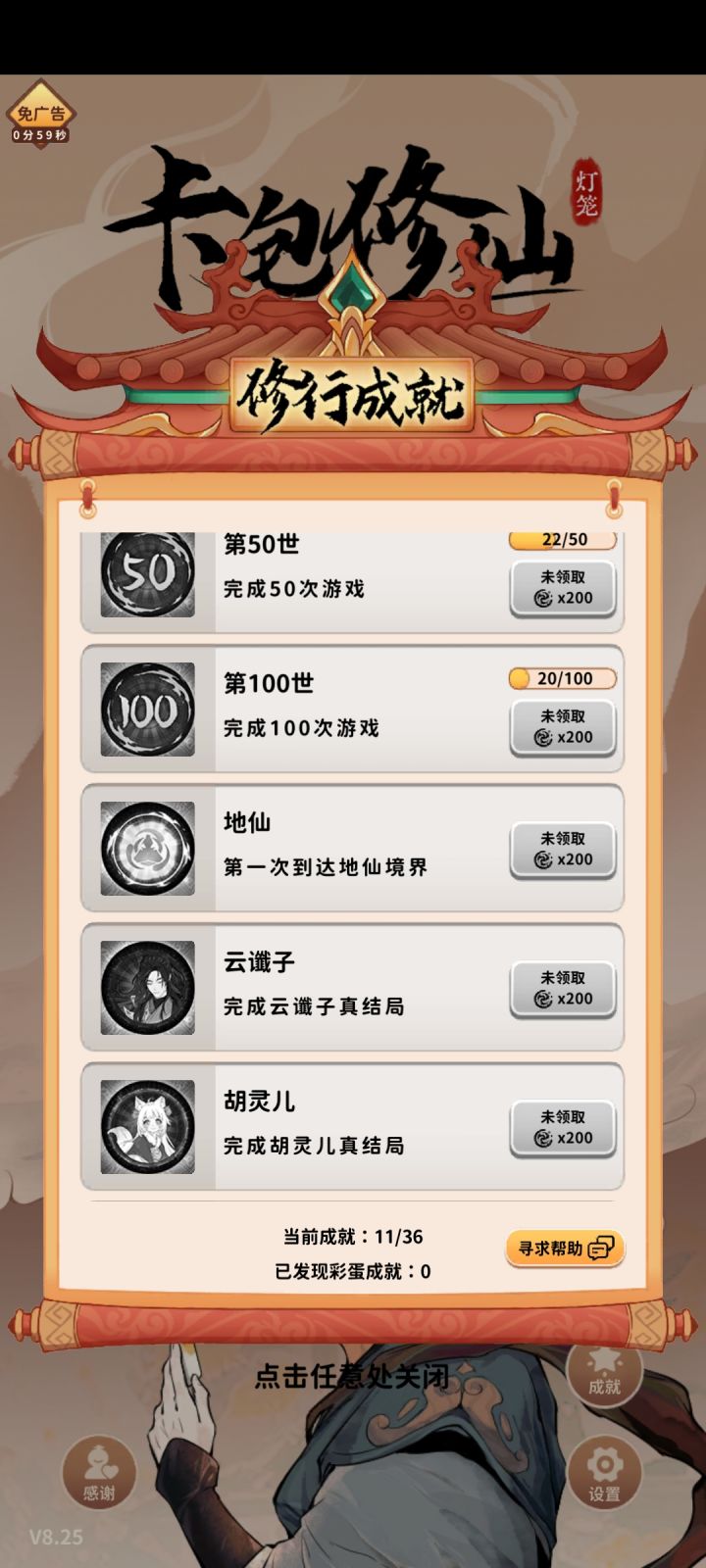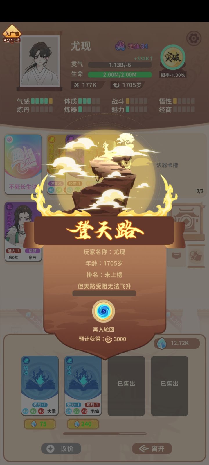 建议先看完真鬼谷卦术攻略。 传承要选真鬼谷卦术,刷魅力3~4点 伙伴刷新推荐如图二死劫(不用看气运)最好 伙伴卡左上角为气运,1点气运恶运次之 其他的运气什么的别要(这成就开局要让3个伙伴死然后就会变成魔道圣人)开局先不要突破等云谶子的第一次来 然后来到实力练气选择加一个伙伴(不喜欢看广告的可以不要)然后你的一点运气伙伴卡先不要丢 等他死加灵气(你有更好的伙伴品质,词条可丢,(粘人的