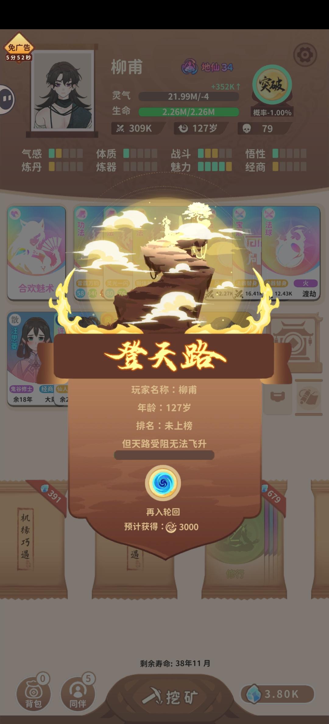 前期肯定要看广告把不死长生诀弄出来,弄出来了过后就需要刷轮回点了,怎么刷呢?开局前期先把宝阁调成10年内碰两次,前期有钱的情况下每个宝阁必须开找枯木逢春和恢复术或大恢复术,其他卡包一个也别点,只点宝阁,找到这两个后,后面宝阁只需要砍价拿突破丹就行几率80%再去突破(有更好的功法可以换,两个词条最顶搭配:恶魔书印+大恢复术或枯木逢春),武器词条要体质,武器会坏可要可不要,然后就是无限挖矿-宝阁-突破