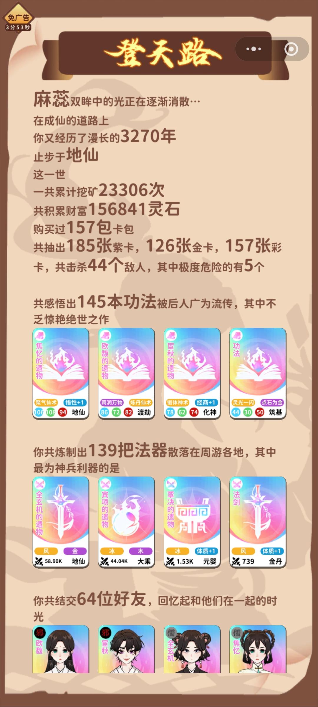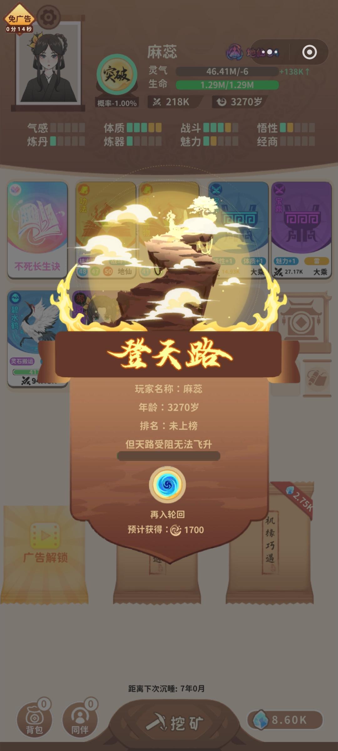 我才知道不同版本广告奖励不一样我这个应该是最拉的好像别的居然有10分钟免广告!但是重开的话我3万多轮回点就没了