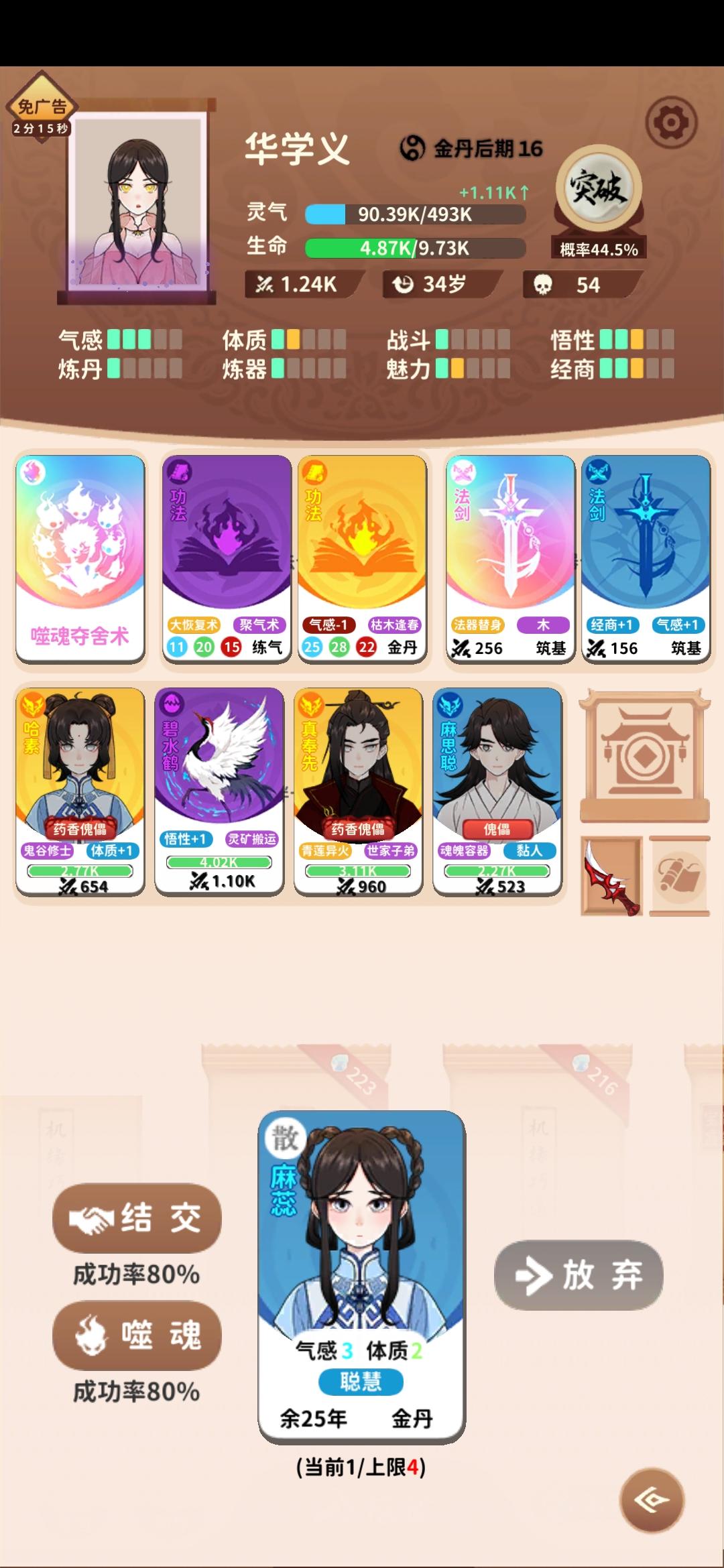 噬魂有bug。伙伴飞升地仙,不会留在界面(直接死了给我留遗物),所以压根夺舍不了地仙并飞升。