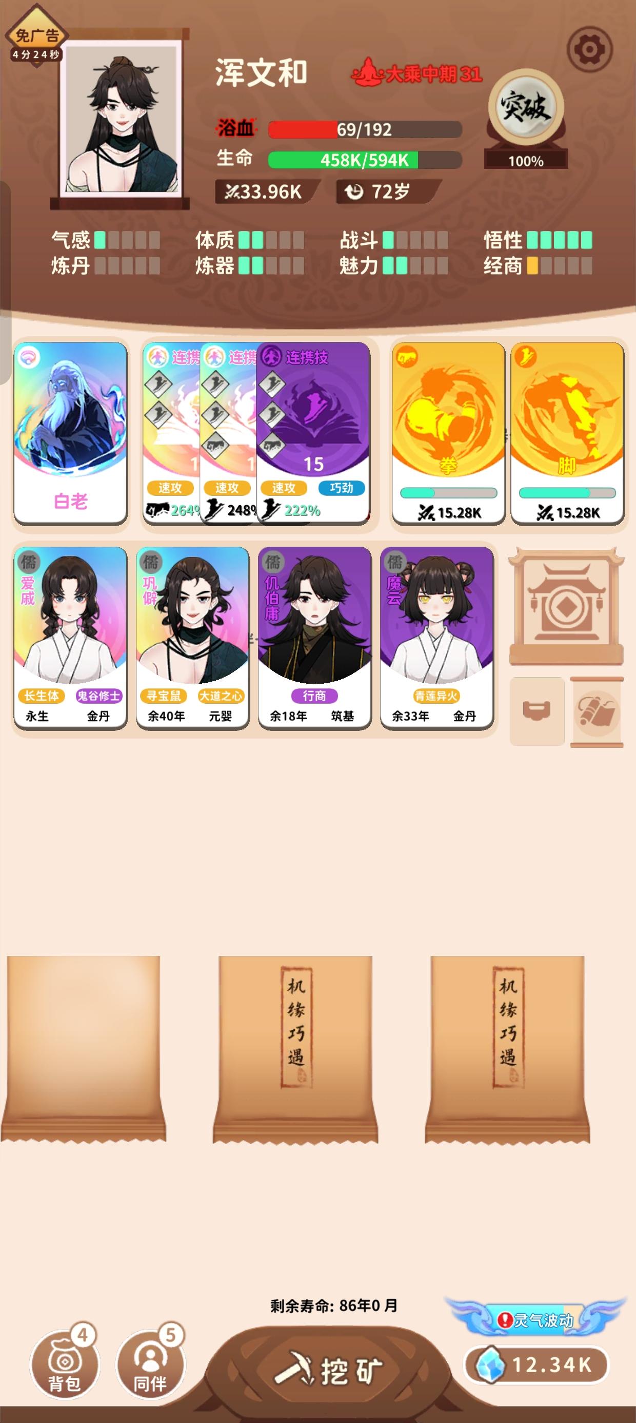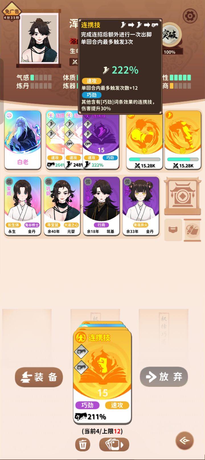 坏消息:大乘中期才集齐,好消息:还有86年可以爽玩玩戒指核心就是开局刷个儒道长生体,然后悟性刷满,其他属性不重要原本想攒三15单拳连击的,太难刷到了,只找到一个双拳15和一个三拳9