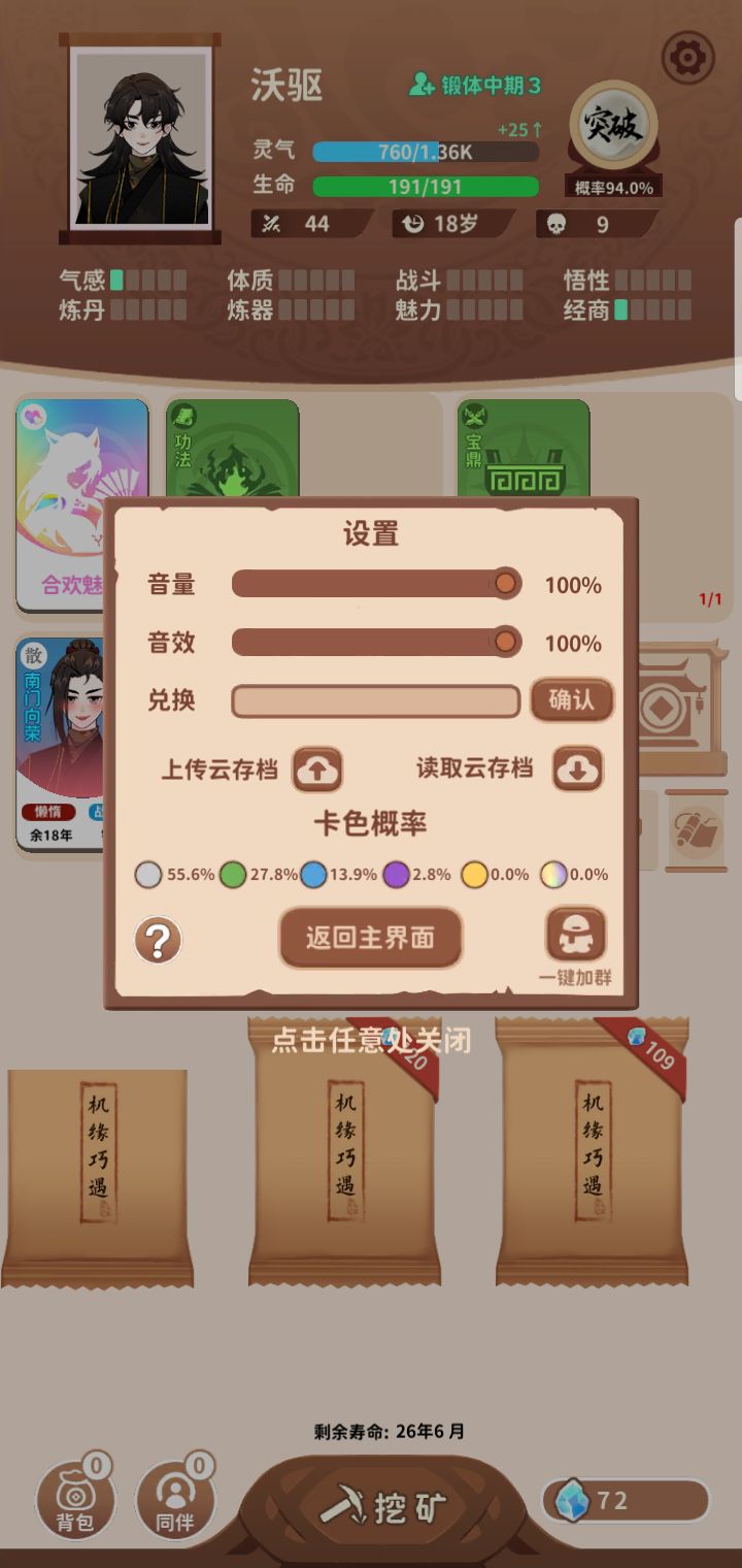 前言——目前通关两次,后续会尝试更多流派。第一次做小白攻略,不足的地方请见谅,很高兴我的攻略可以为你带来小小的帮助,自己去探索流派会更加有趣哦~欢迎补充----------------------------------------------------------------------------属性——气感:每一点提升20%修行速度(很重要)魅力:结交同伴时影响成功率(不要放跑超级
