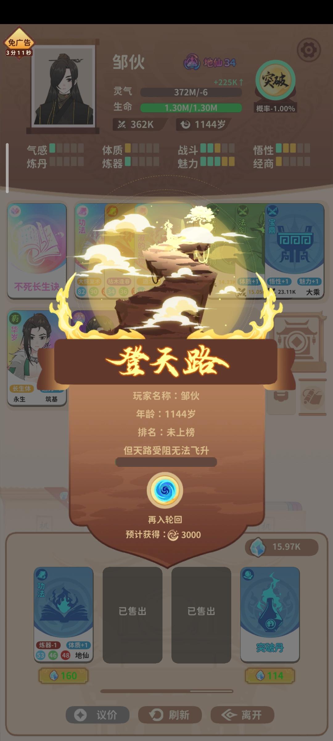 我才知道不同版本广告奖励不一样我这个应该是最拉的好像别的居然有10分钟免广告!但是重开的话我3万多轮回点就没了