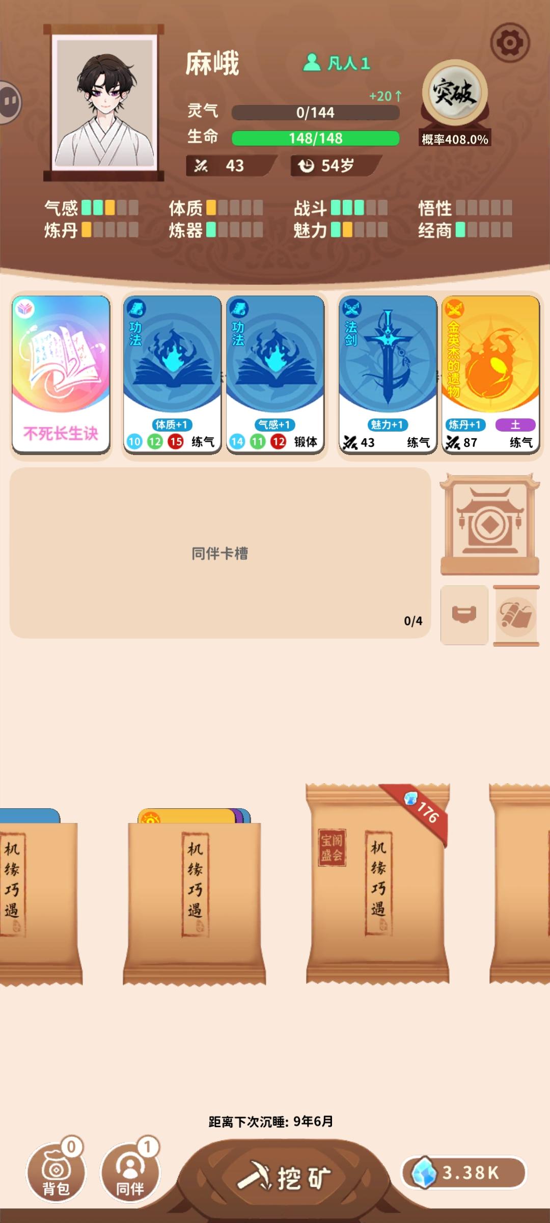 7.夺舍唯一加点:魅力最无脑的一集,直接不断夺舍境界比自己高的,一路夺舍到地仙,但是需要一直有好道友,所以开局建议刷玄道友,由于夺舍多了依然会容易被打,遁术依然好用,理论寿命最低地仙就是它,强度绝对在t08.木戒主加点:悟性,魅力副加点:体质,战斗由于突破率固定100%,还没有法器所以炼丹,炼器,经商全部无用,悟性让你多悟出点可以打连招的功法,比如双拳连携也是拳,攒三个双拳直接一下出十