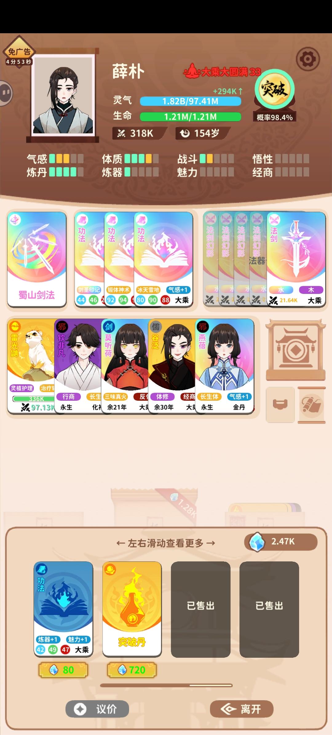 地仙100%突破率达成,稳健这一块ps:宝阁真的难刷,68岁进大乘大圆满,八十年才刷到100%