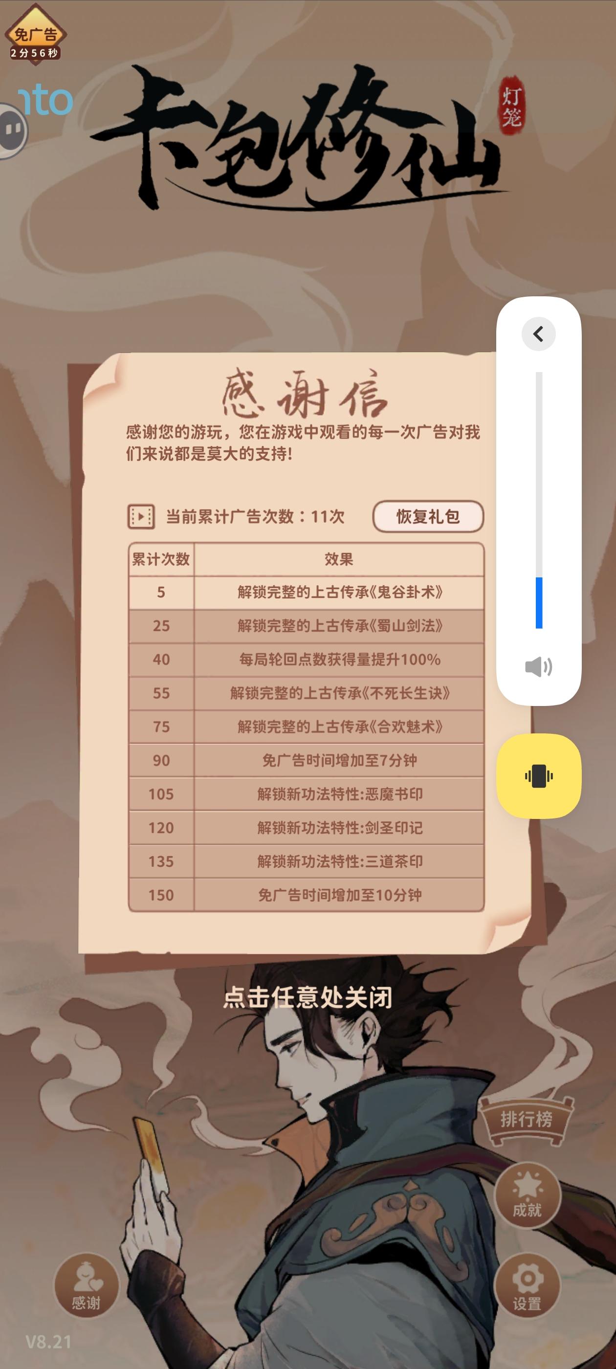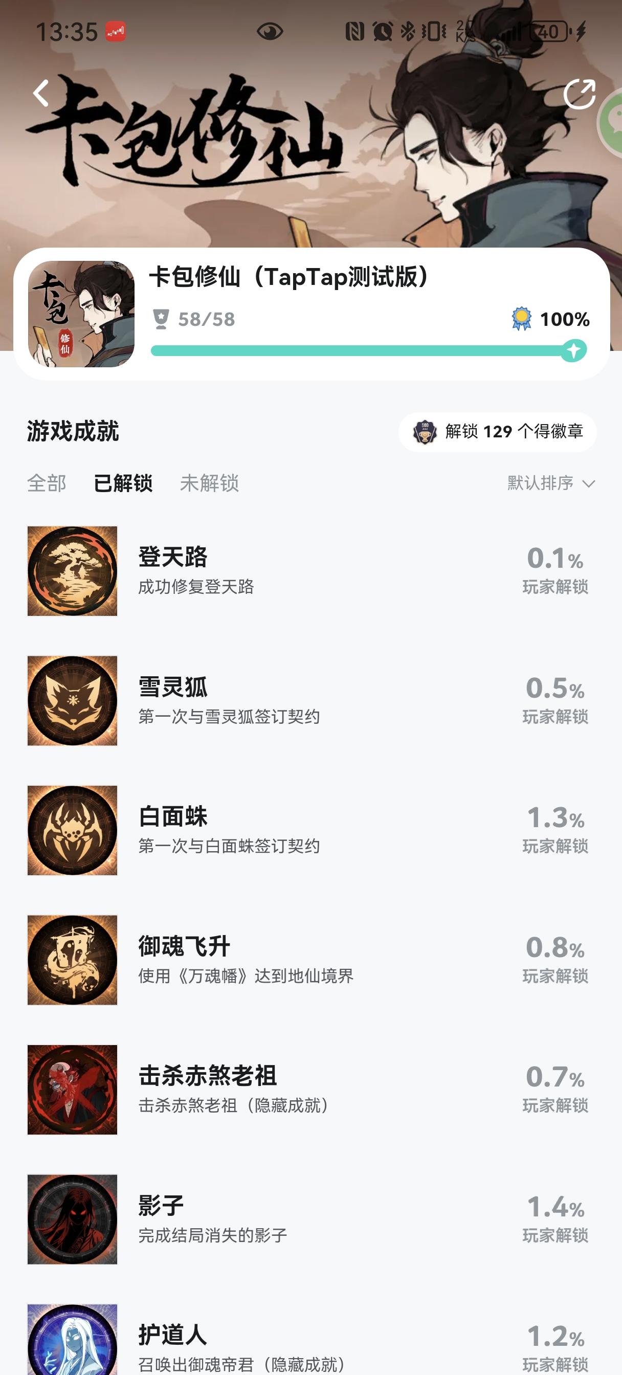 全成就拿下,最麻烦的就是登天路了,纯磨时间🥲其次是那个狐狸宠物,毕竟目前版本宠物用处非常小,单独去刷就是浪费时间,平时点又污染卡池,最后是搞了个长生,刷了快一千岁。简单说一下游戏,其实重要的就两条,灵气和突破概率,每种传承就是一个职业,能解决突破概率就想办法凑灵气(气感,实际上灵气根本不是问题,不考虑上榜的话),能有大量灵气供应的就凑突破概率(炼丹,药王谷,雨润万物,入土为安),套路都大同小异