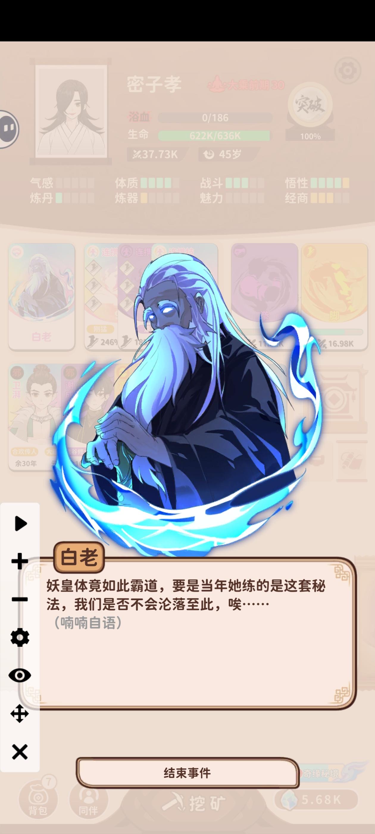 全成就拿下,最麻烦的就是登天路了,纯磨时间🥲其次是那个狐狸宠物,毕竟目前版本宠物用处非常小,单独去刷就是浪费时间,平时点又污染卡池,最后是搞了个长生,刷了快一千岁。简单说一下游戏,其实重要的就两条,灵气和突破概率,每种传承就是一个职业,能解决突破概率就想办法凑灵气(气感,实际上灵气根本不是问题,不考虑上榜的话),能有大量灵气供应的就凑突破概率(炼丹,药王谷,雨润万物,入土为安),套路都大同小异